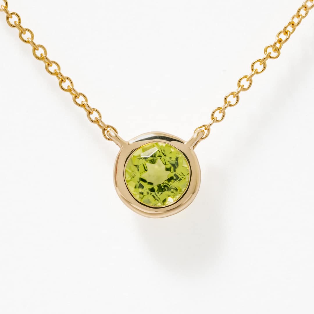 0.42 Carat Bezel Set Round Peridot Necklace (Yellow Gold)