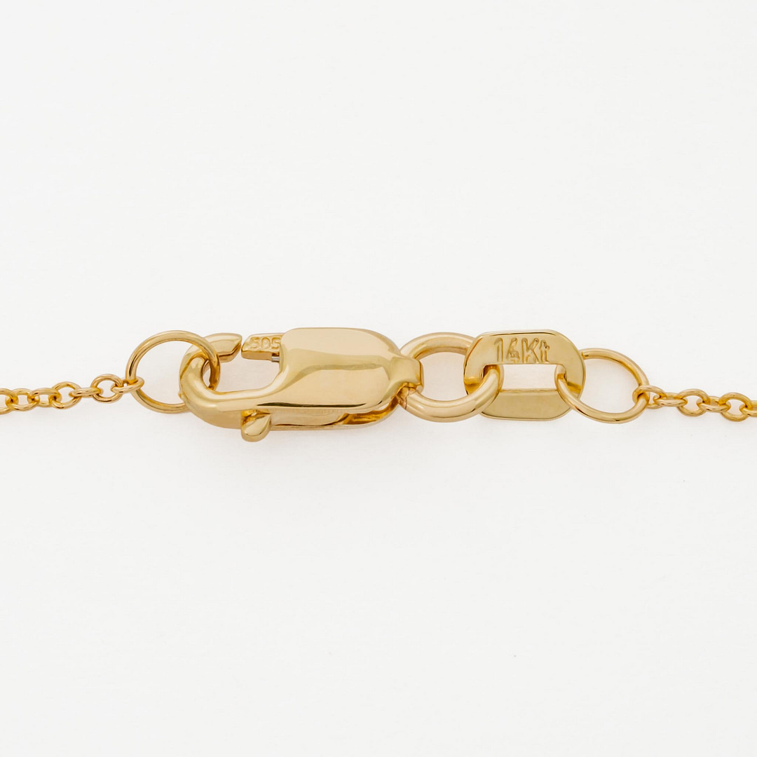 Discover the refreshing elegance of our 14 karat yellow gold necklace, graced with a 0.42 carat bezel-set round peridot. The peridot’s lively green shade evokes the rejuvenating spirit of spring, set against the backdrop of lustrous yellow gold for a striking contrast. Hanging on an 18-inch chain, this necklace is a celebration of nature’s vibrant beauty, offering a light and airy touch to any outfit. It’s an exquisite choice for those who appreciate the peridot’s joyful color and the enduring appeal of yellow gold.