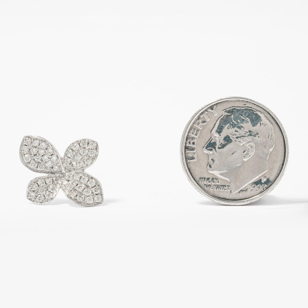 0.74 Total Carat Weight Pave Diamond Flower Earrings (White Gold)