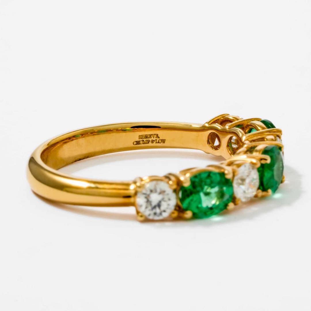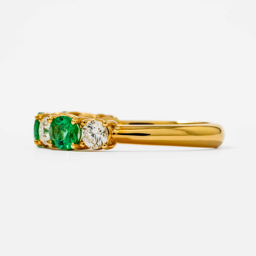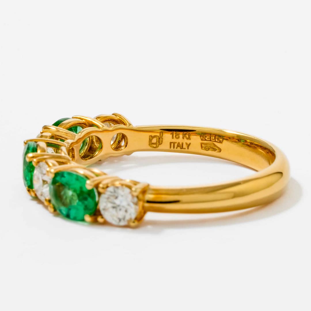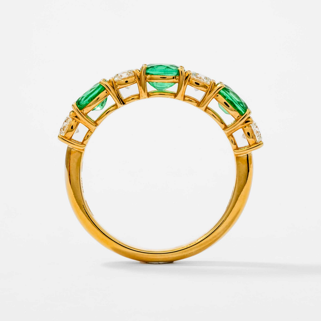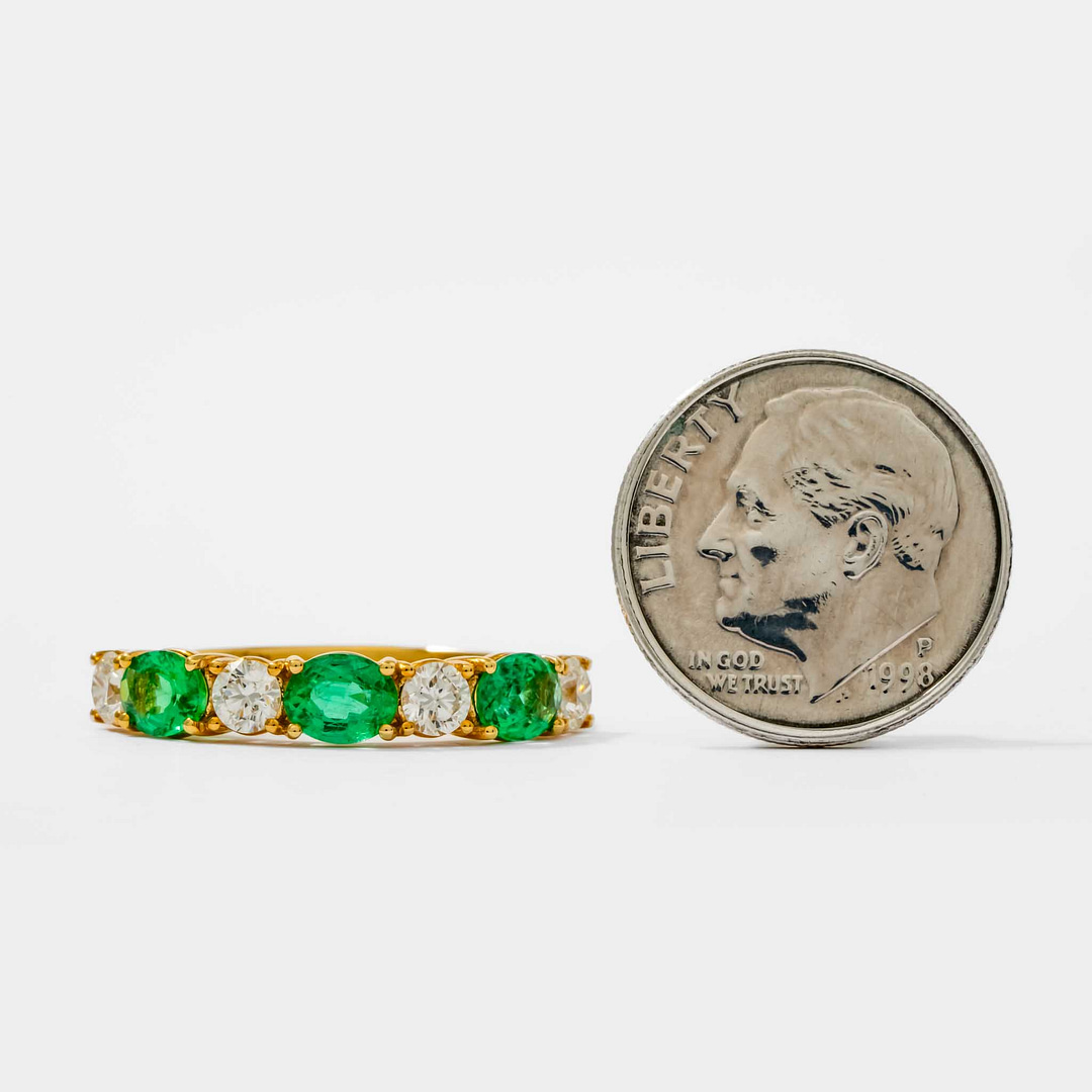 0.96 Total Carat Weight Oval Cut Emerald & Diamond Halfway Band (Yellow Gold)