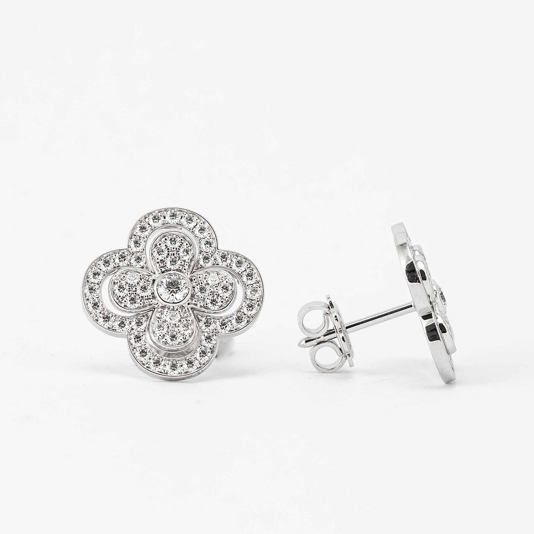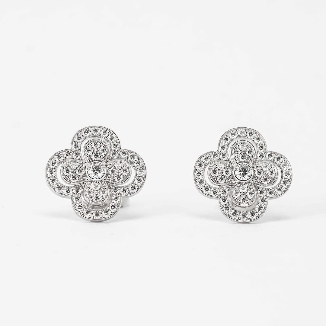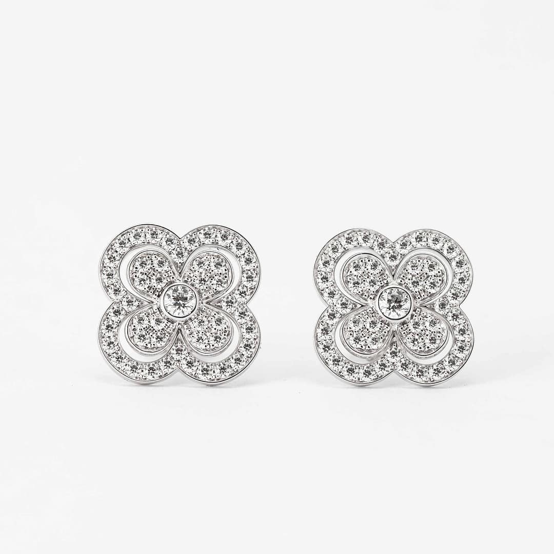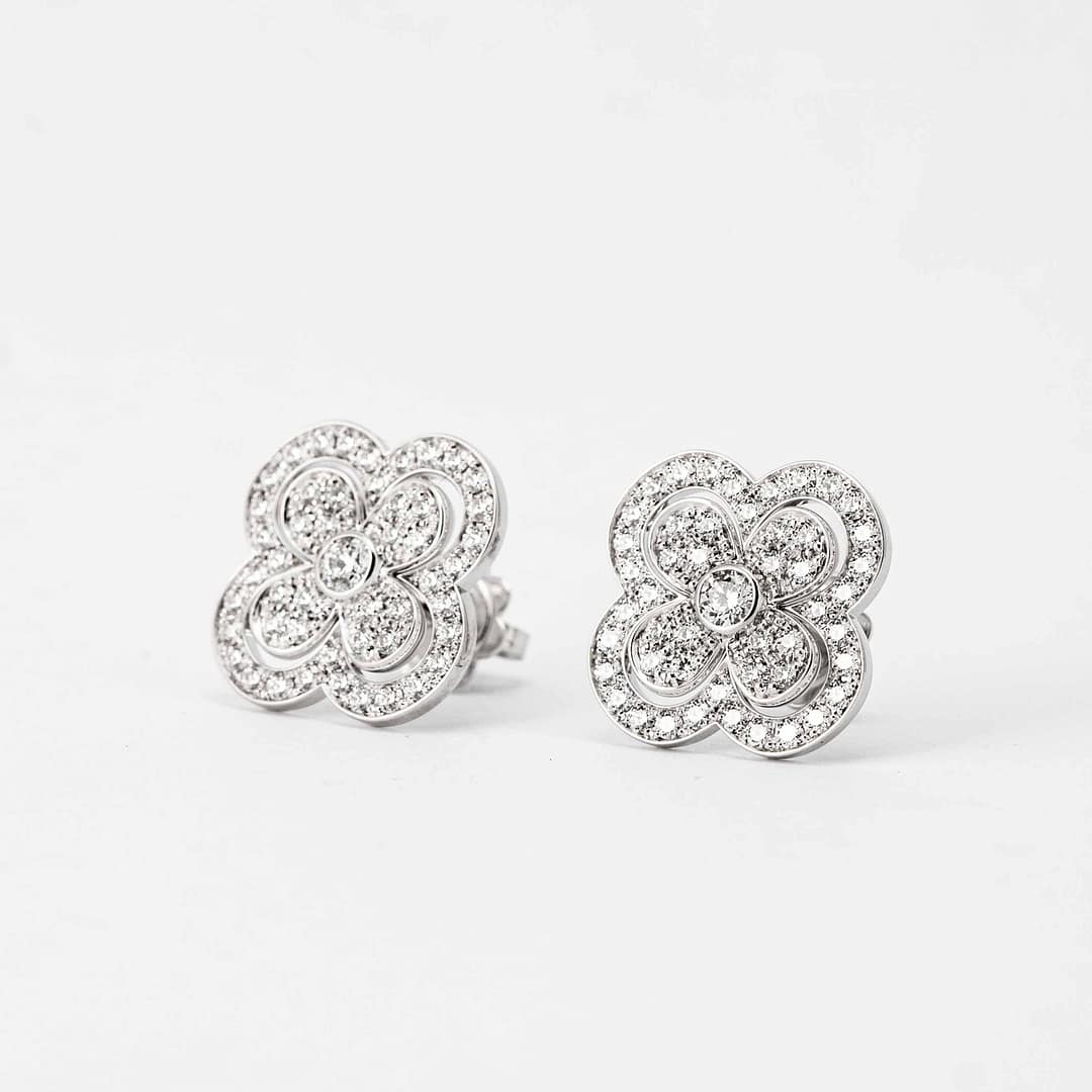 0.96 Total Carat Weight Round Pave Diamond Clover Motif Earrings (White Gold)