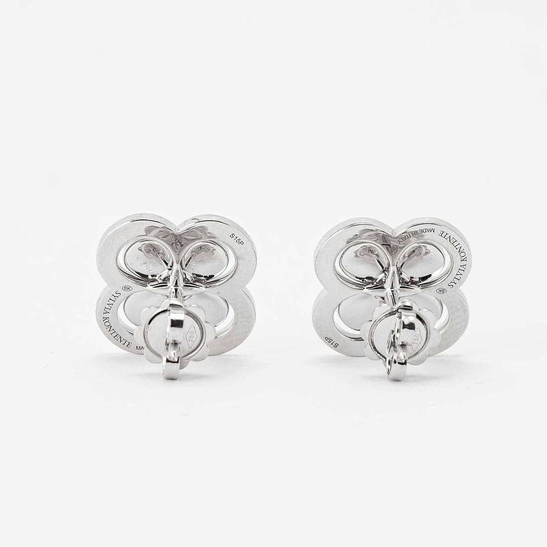 These 18kt white gold earrings are a charming embodiment of elegance and sophistication. Crafted in a delightful clover motif, the earrings are adorned with 98 round pave diamonds, all collectively weighing 0.96 carats. The diamonds’ brilliance beautifully contrasts with the white gold, making these earrings a remarkable accessory for any occasion. To witness their true sparkle, please visit our Shreve, Crump & Low store in Boston, Massachusetts.
