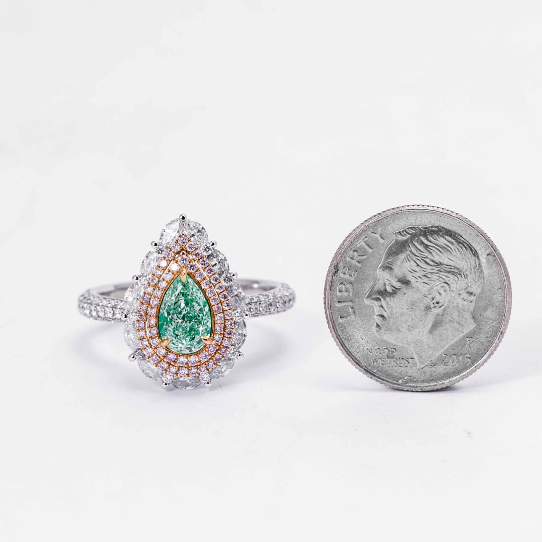 1.01 Carat Pear Shape Very Light Green SI1 Diamond with Triple Halo Diamond Two-Tone Engagement Ring (GIA Certified)