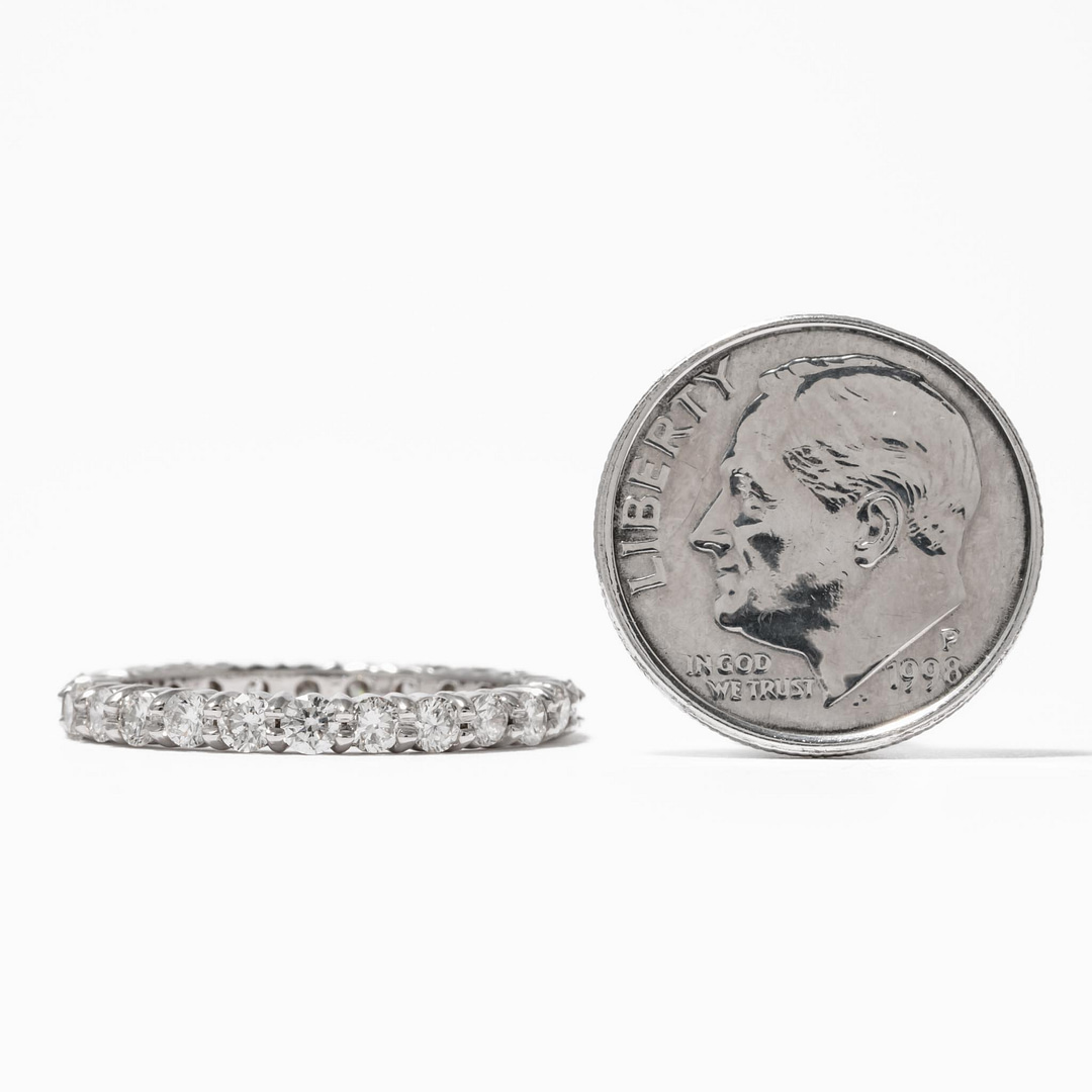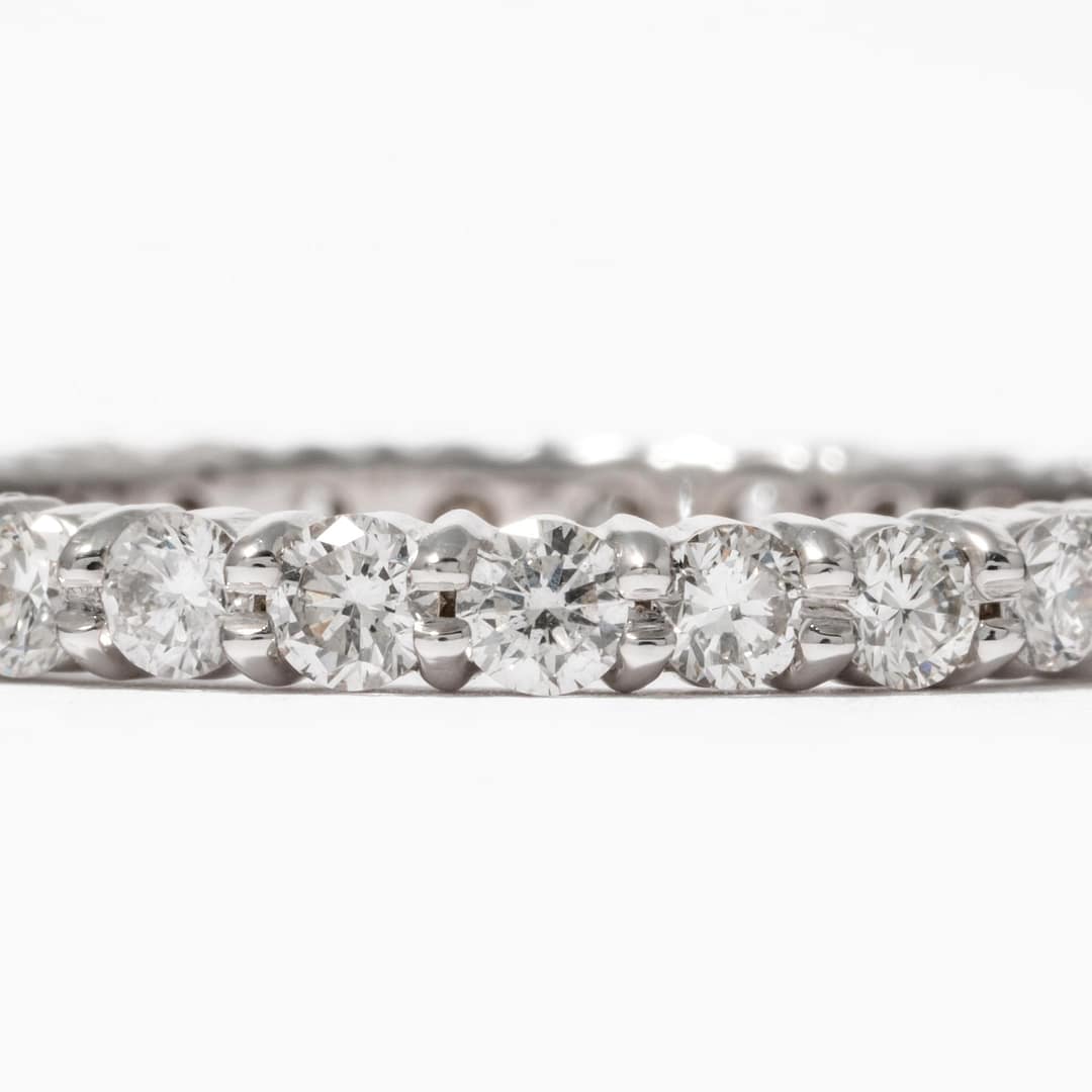 Experience the timeless elegance of our 14 karat white gold eternity band. Featuring 25 round diamonds weighing a total of 1.06 carats, this size 6.25 ring at Shreve, Crump & Low offers an enduring symbol of love and commitment, reflecting the pinnacle of luxury and design.