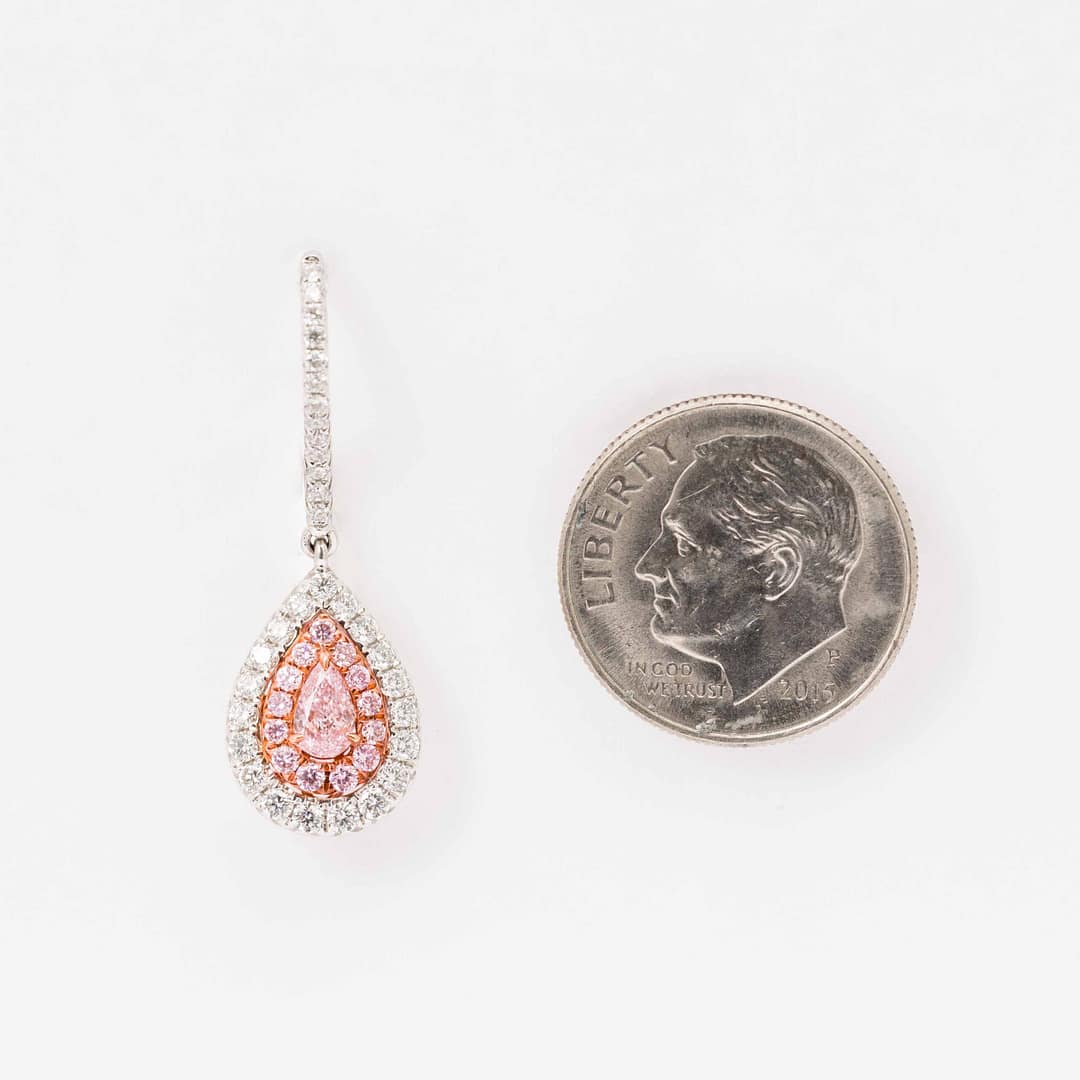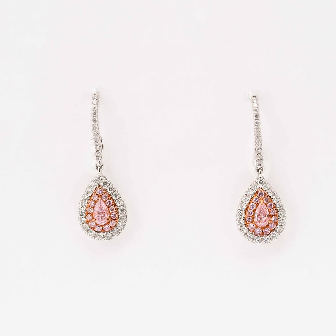1.34 Total Carat Weight Pear Shape Pink Diamond Double Halo Drop Earrings (Two Tone)