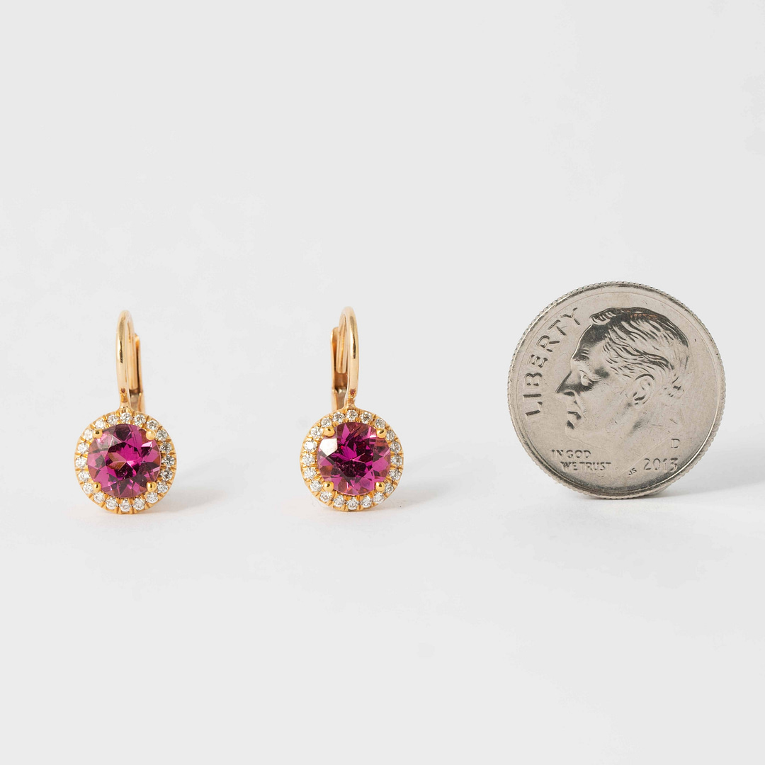 1.94 Carat Round Rhodolite Garnet with 0.18 Carat Drop Earrings (20KGP)