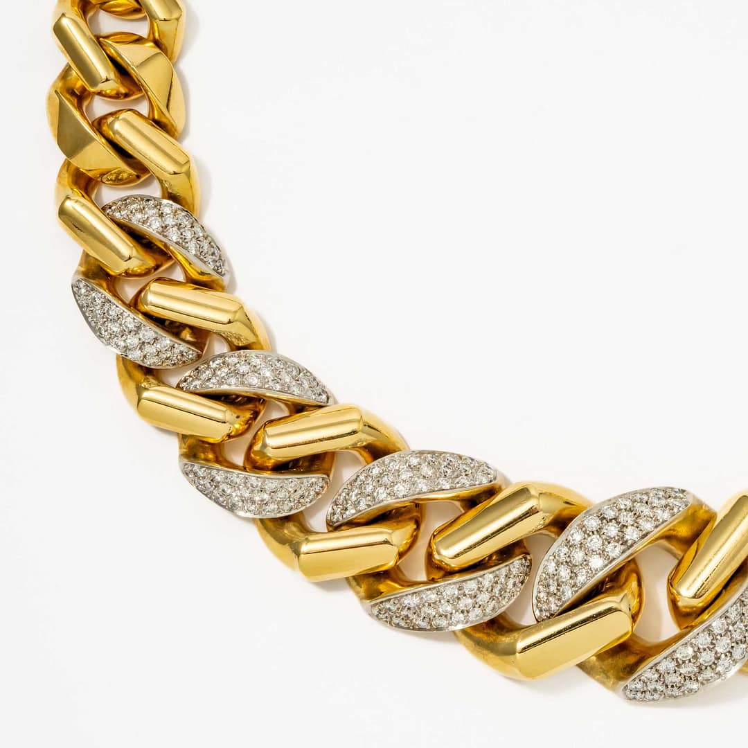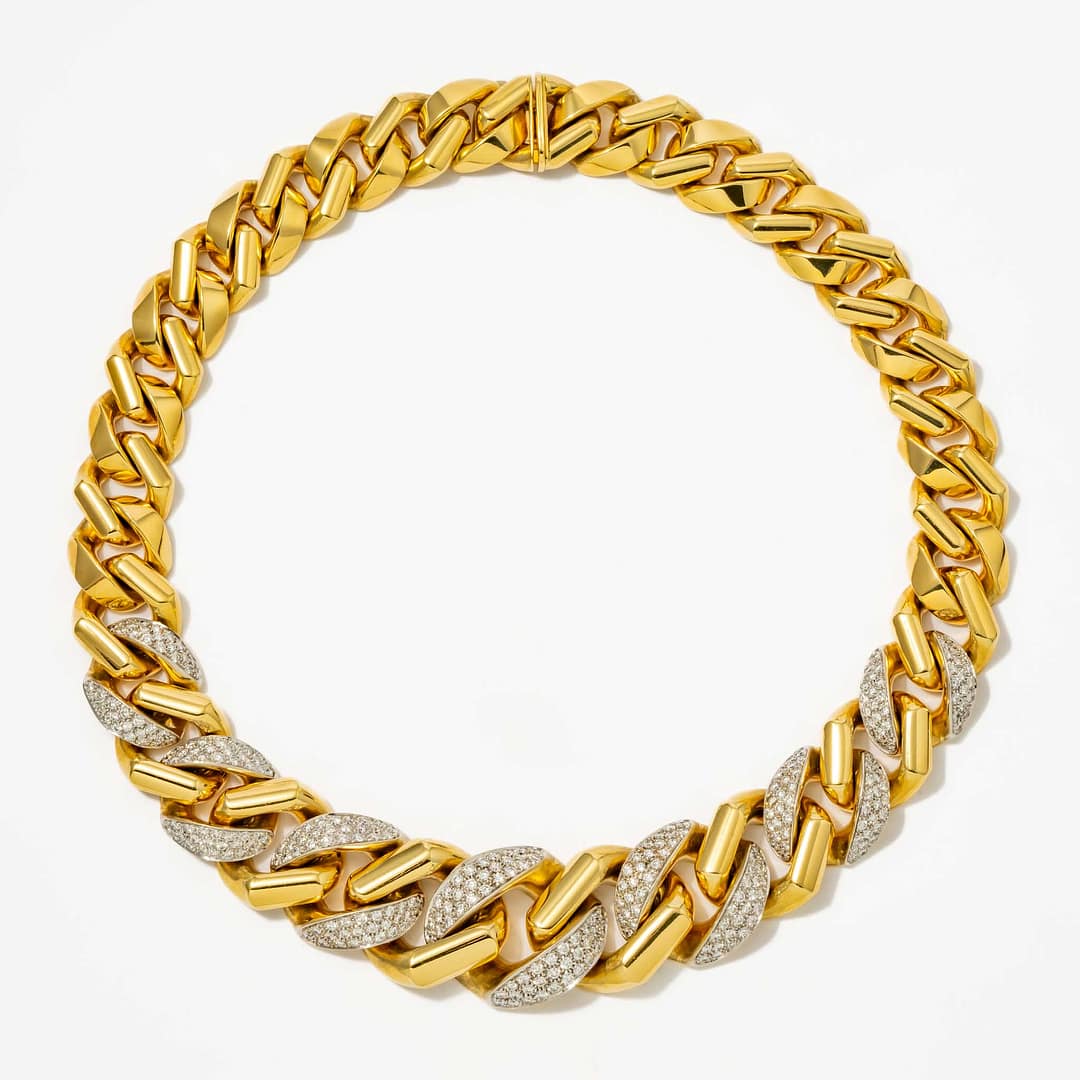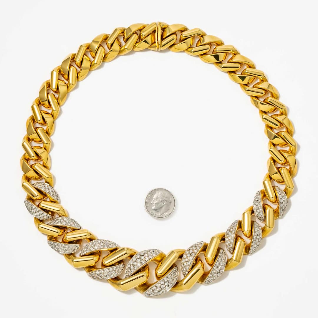 12.00 Total Carat Weight Italian 1970’s Link Diamond Necklace (Yellow Gold)