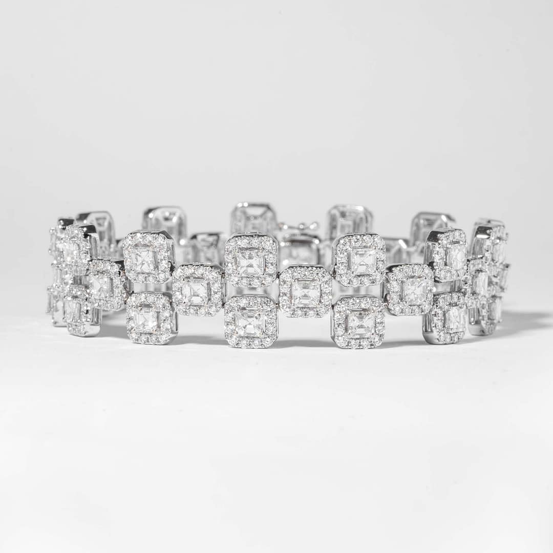 12.74 carat H VS2 Asscher & Full Cut Diamond Bracelet (White Gold)