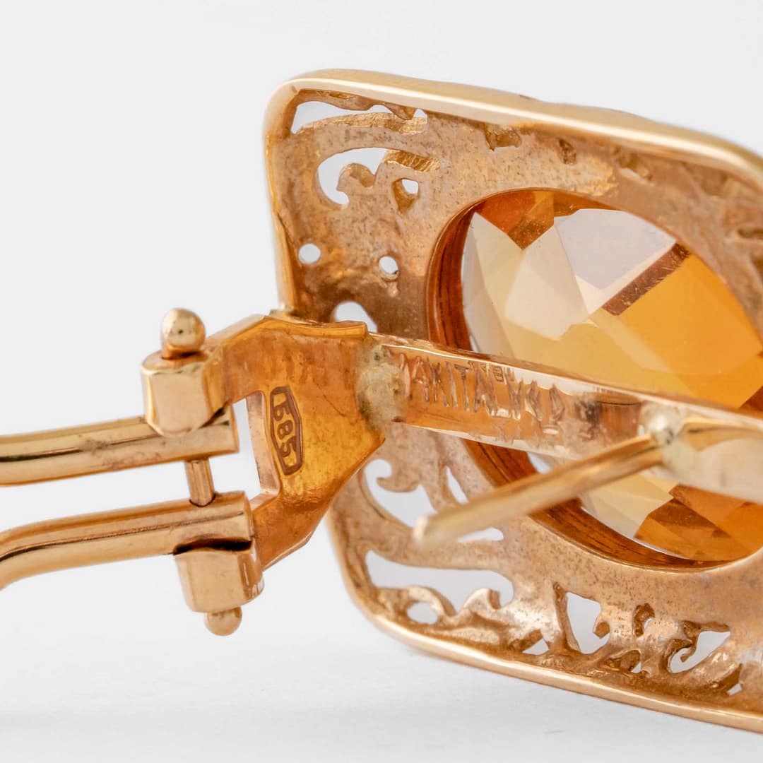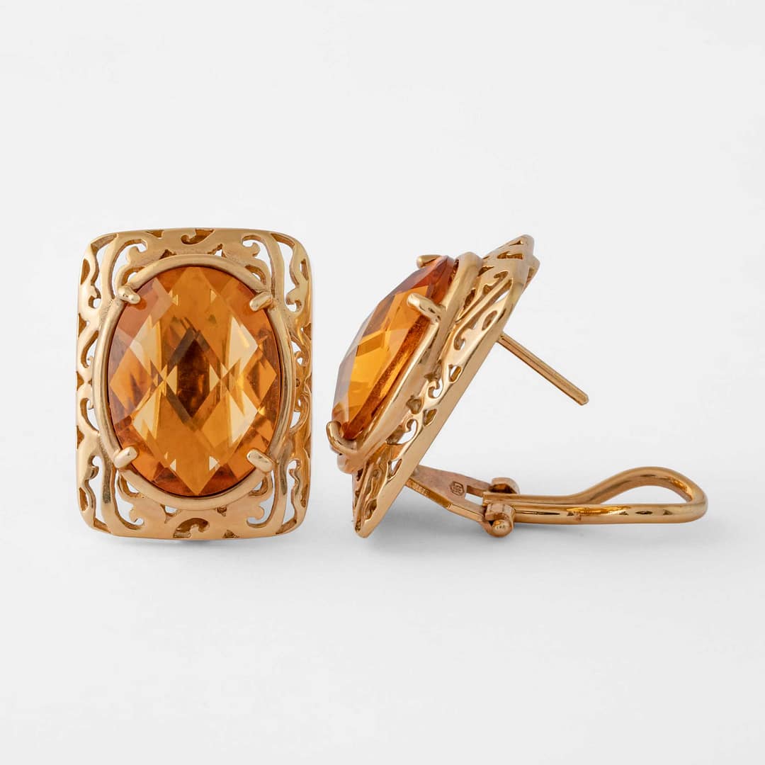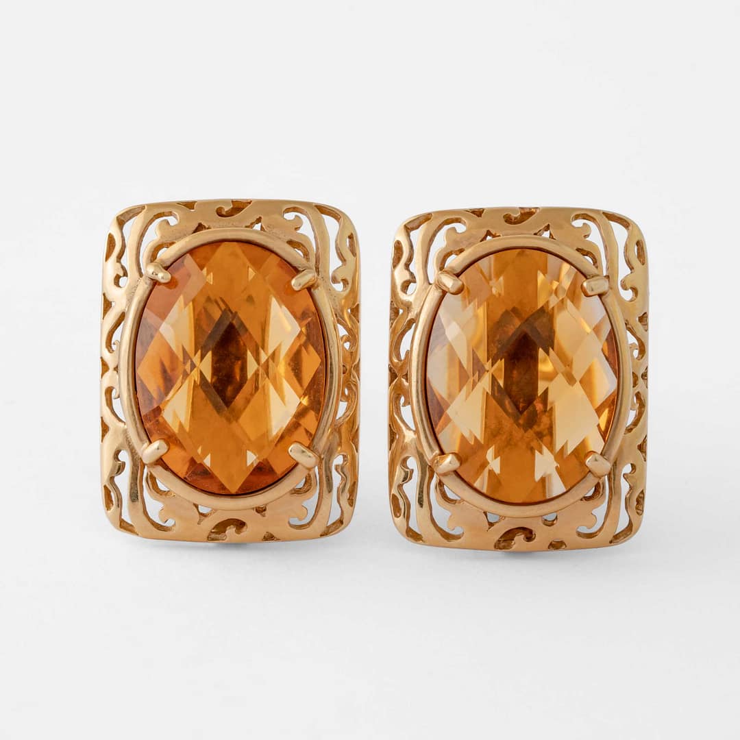 13.60 Carat Oval Cut Citrine Earrings (Yellow Gold)
