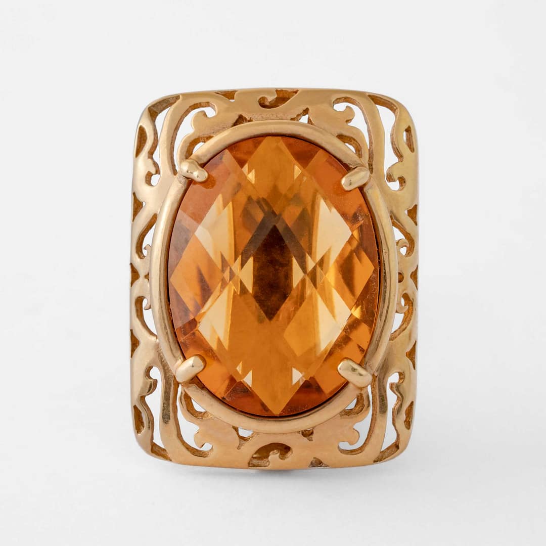 Step up your style with our 14 karat yellow gold ladies earrings. They showcase two oval checkerboard cut citrines, totaling an impressive 13.60 carats. These earrings add a vibrant pop of color and are perfect for those who love to make a statement. Available now at Shreve, Crump & Low.