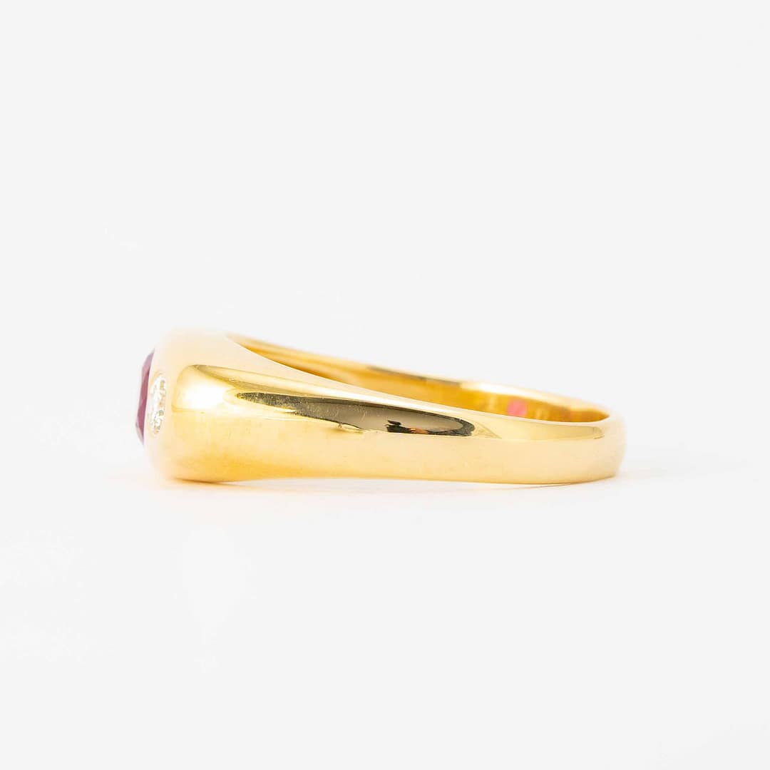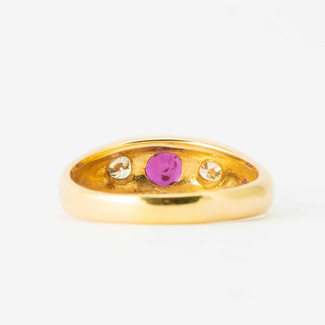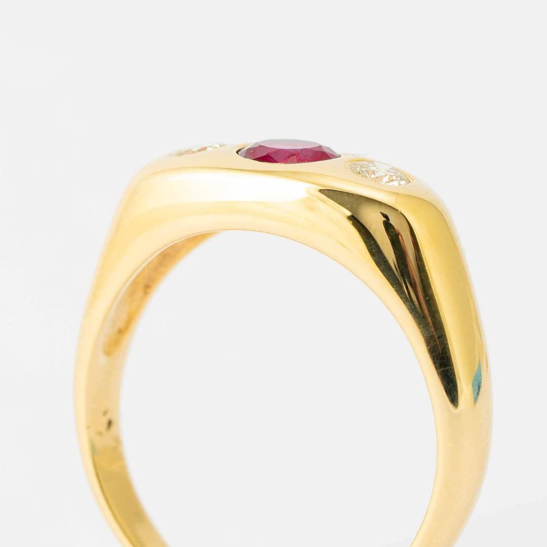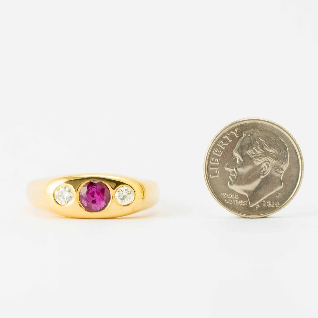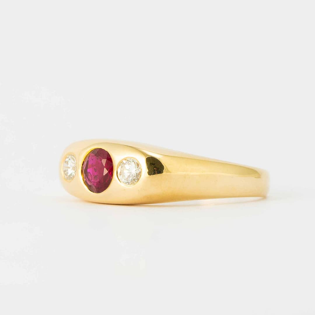 14 Karat Ruby & Diamond 3 Stone Bezel Set Ring (Yellow Gold)