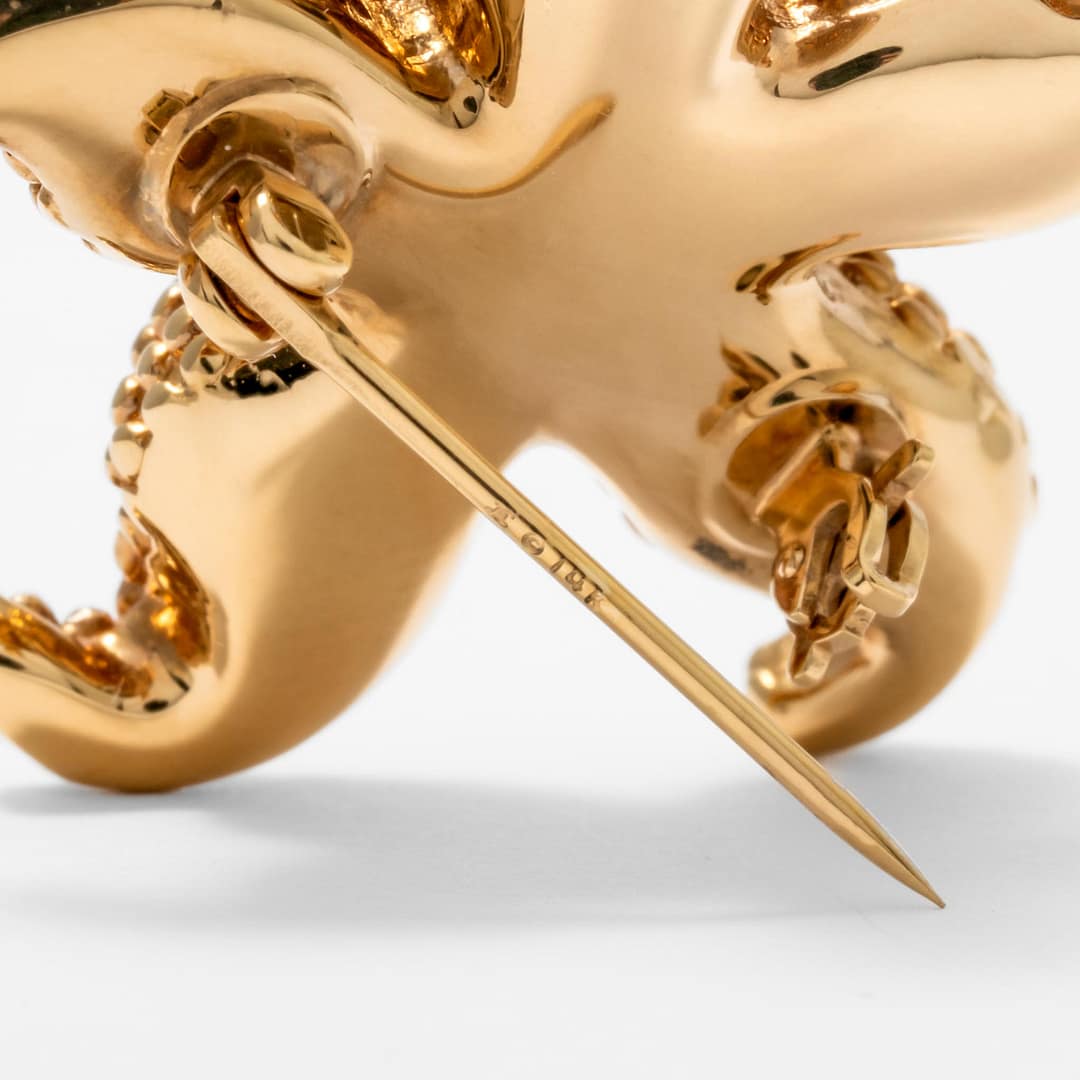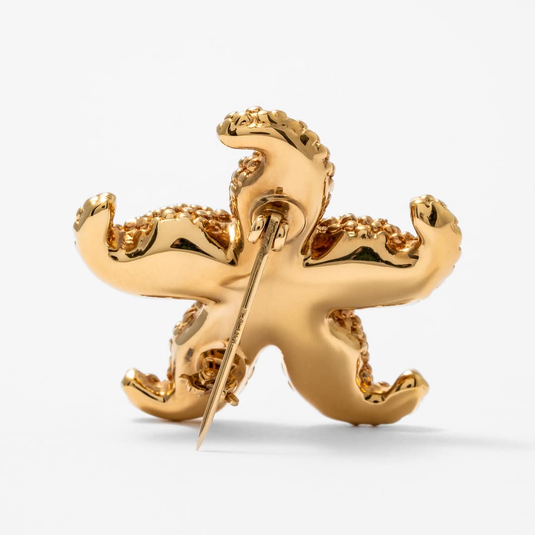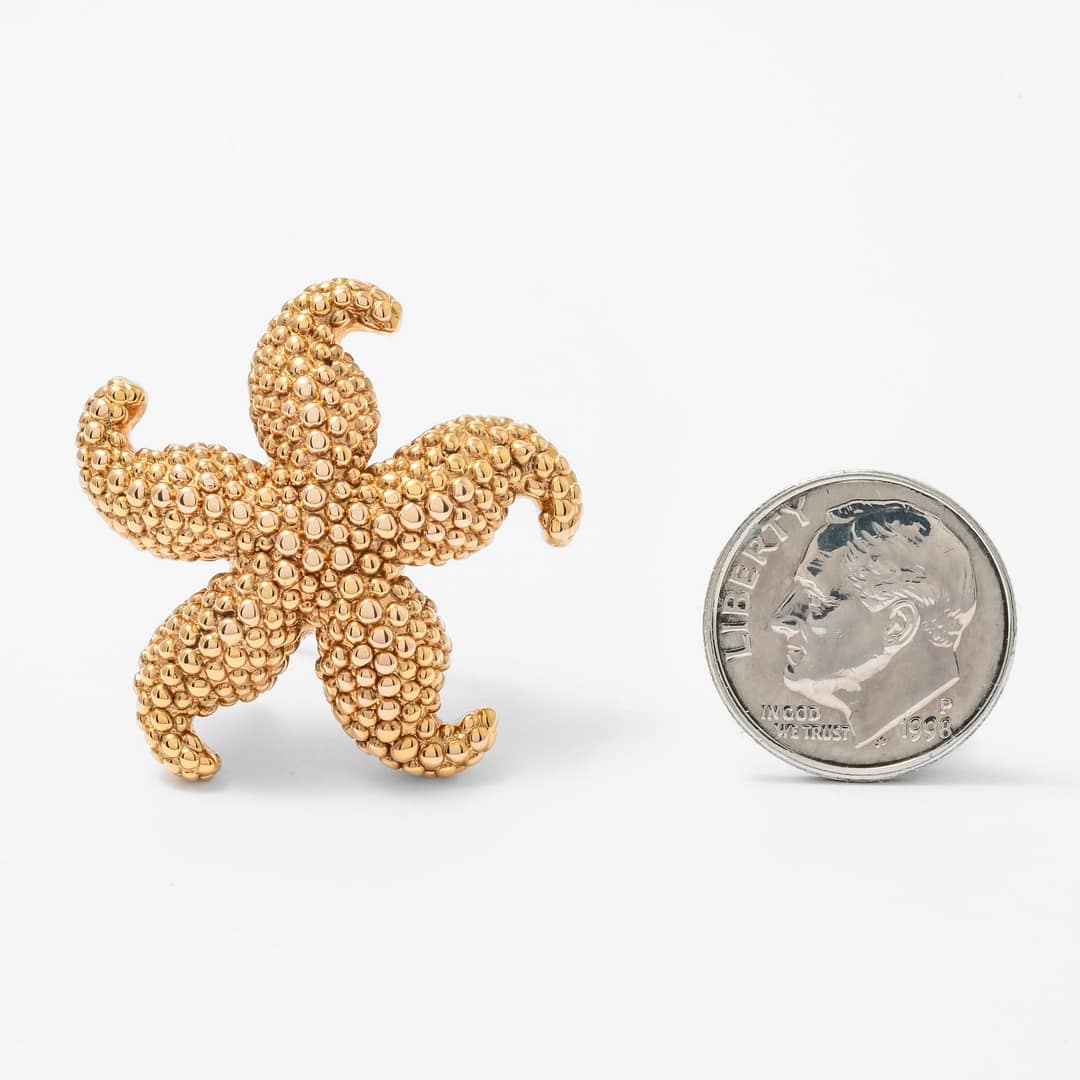 Capture the essence of the ocean with this charming 14K yellow gold starfish pin. Its lifelike texture brings the beauty of the sea to your jewelry collection, making it a standout piece. Perfect for beach lovers and those who appreciate unique accessories, this pin adds a touch of seaside whimsy to any outfit. Wear it to bring a bit of summer fun to your style all year round and enjoy the playful elegance it offers.