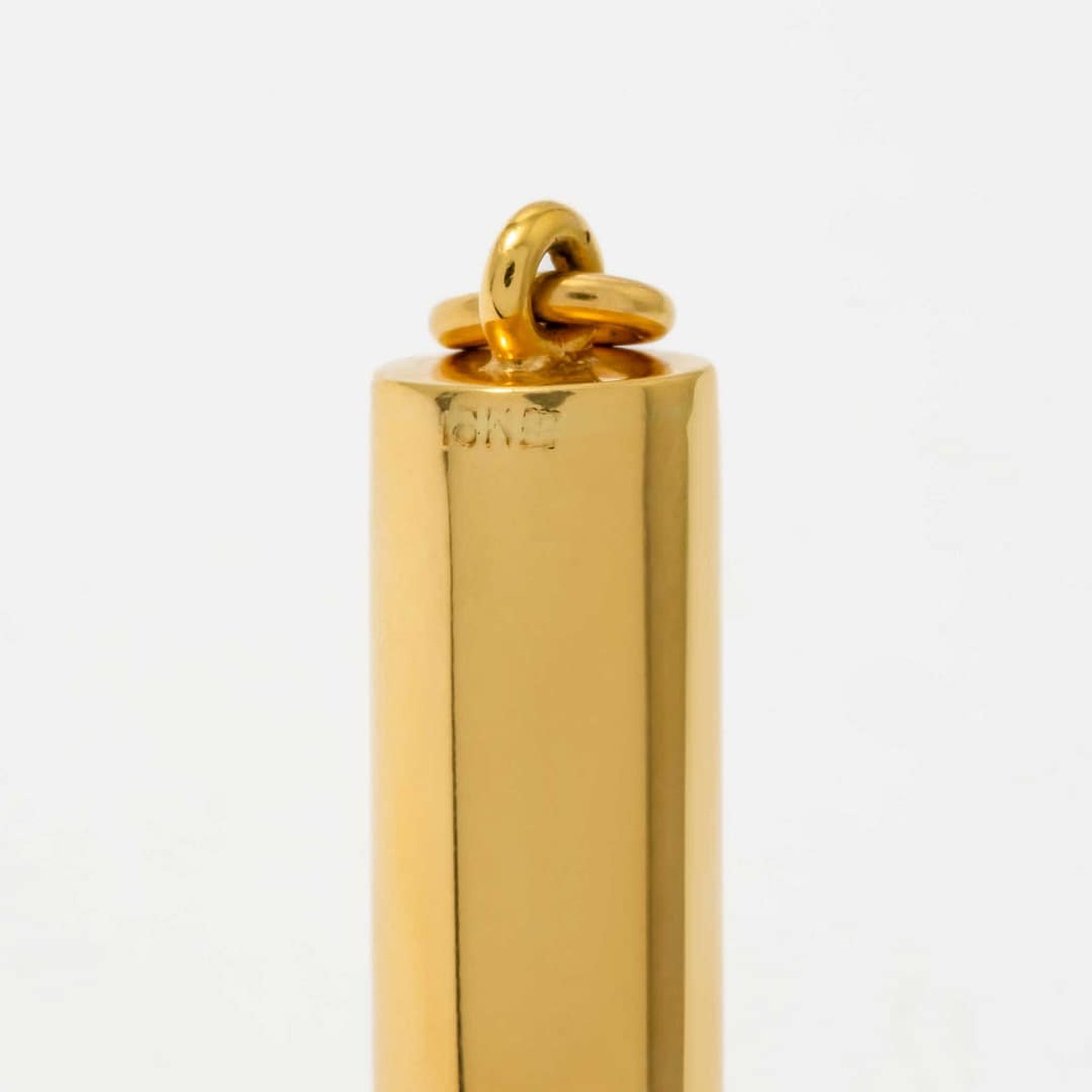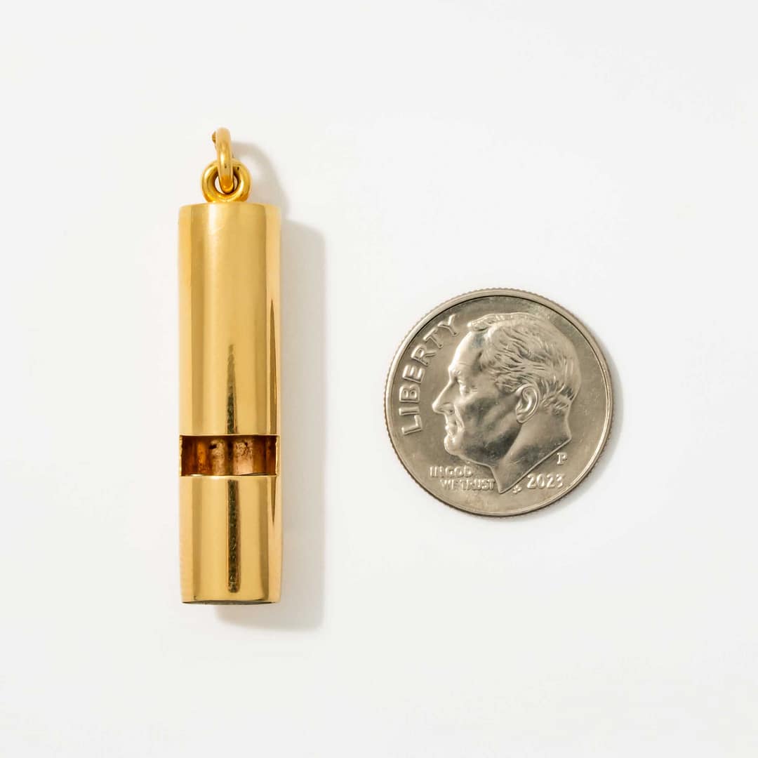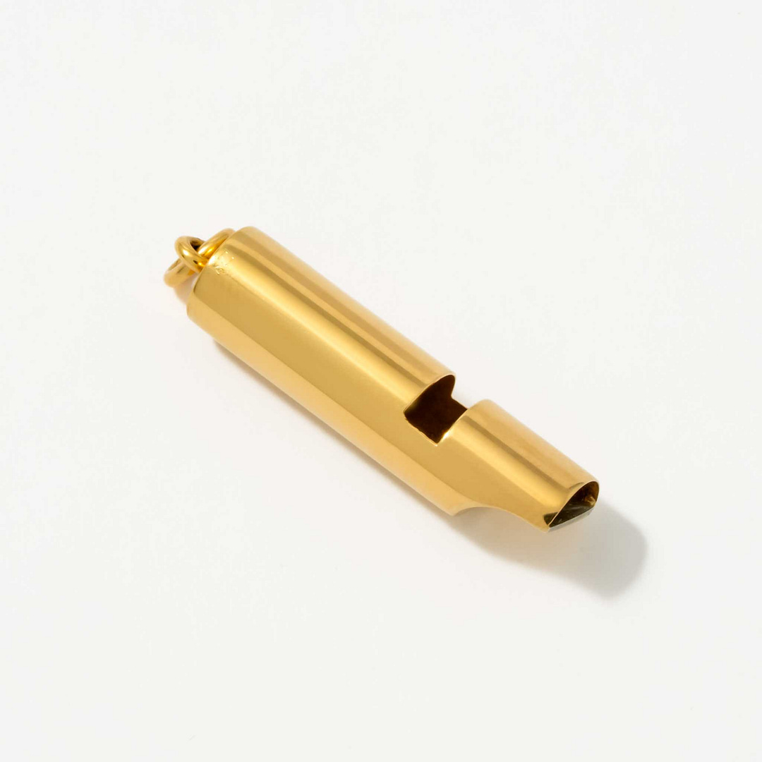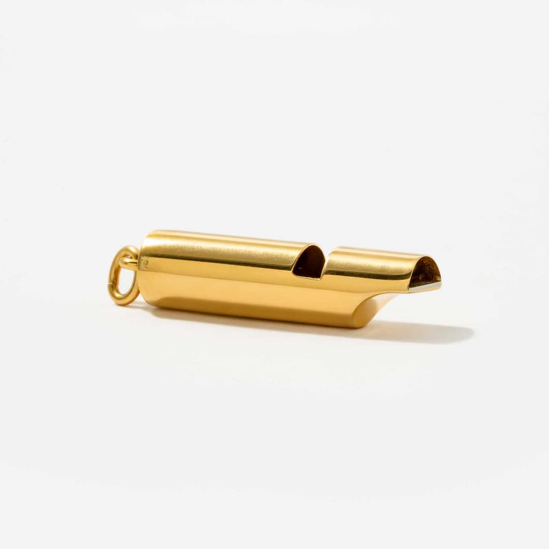 This 14 karat yellow gold whistle pendant offers a playful nod to utility wrapped in precious metal. With its functional shape and warm golden glow, it blends novelty and elegance in one refined piece. The smooth finish and minimalist form make it perfect for pairing with a variety of chains. Whether worn as a statement or a charm, this pendant adds a unique twist to classic gold jewelry.