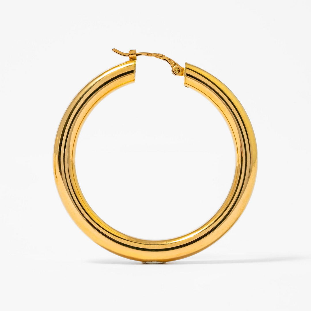 Discover the timeless elegance of our 18 Karat Yellow Gold Tube Hoop Earrings, a classic addition to any jewelry collection. Measuring approximately 35mm, these hoops offer a bold yet refined statement, perfect for elevating everyday elegance. Crafted with precision, their lustrous yellow gold finish radiates warmth and sophistication. Ideal for both casual and formal occasions, these earrings are a testament to enduring style.
