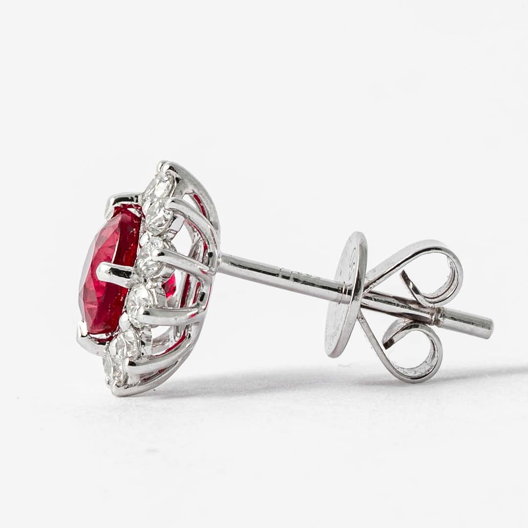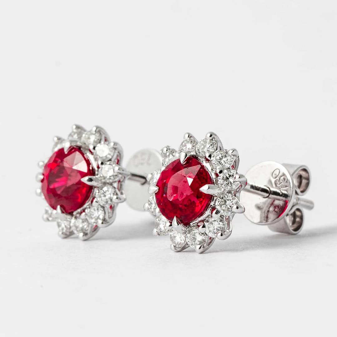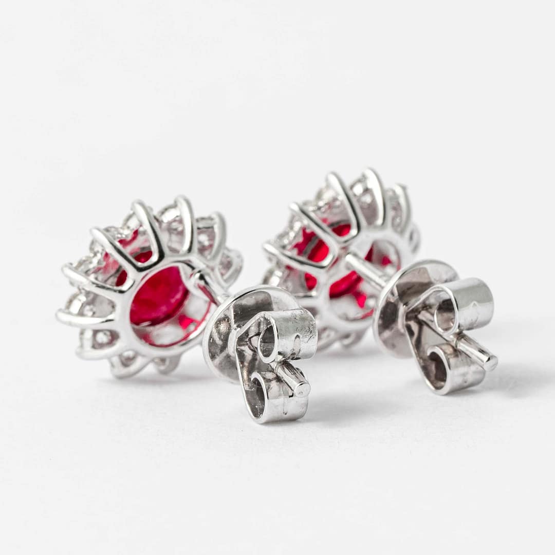2.10 carat Ruby & Diamond Cluster Earrings (White Gold)