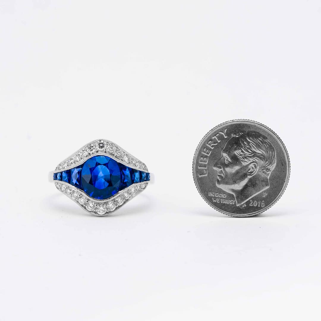 2.15 Carat Oval-Cut Blue Sapphire & Diamond Art Deco Style Ring (Platinum)