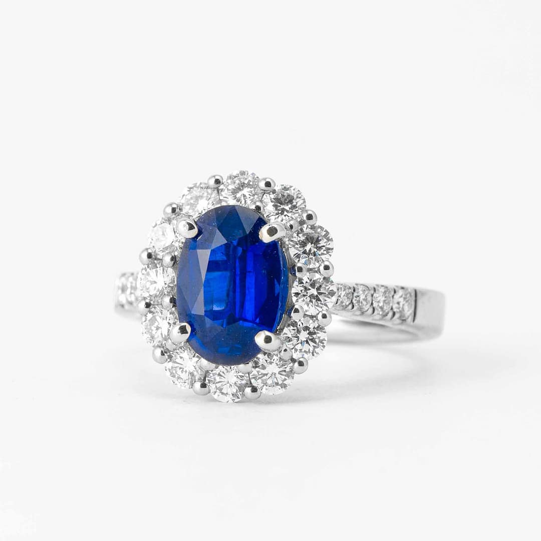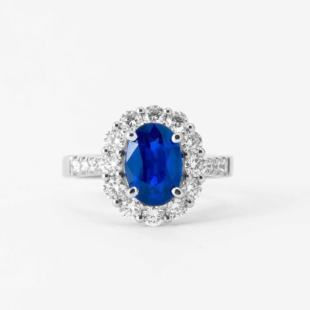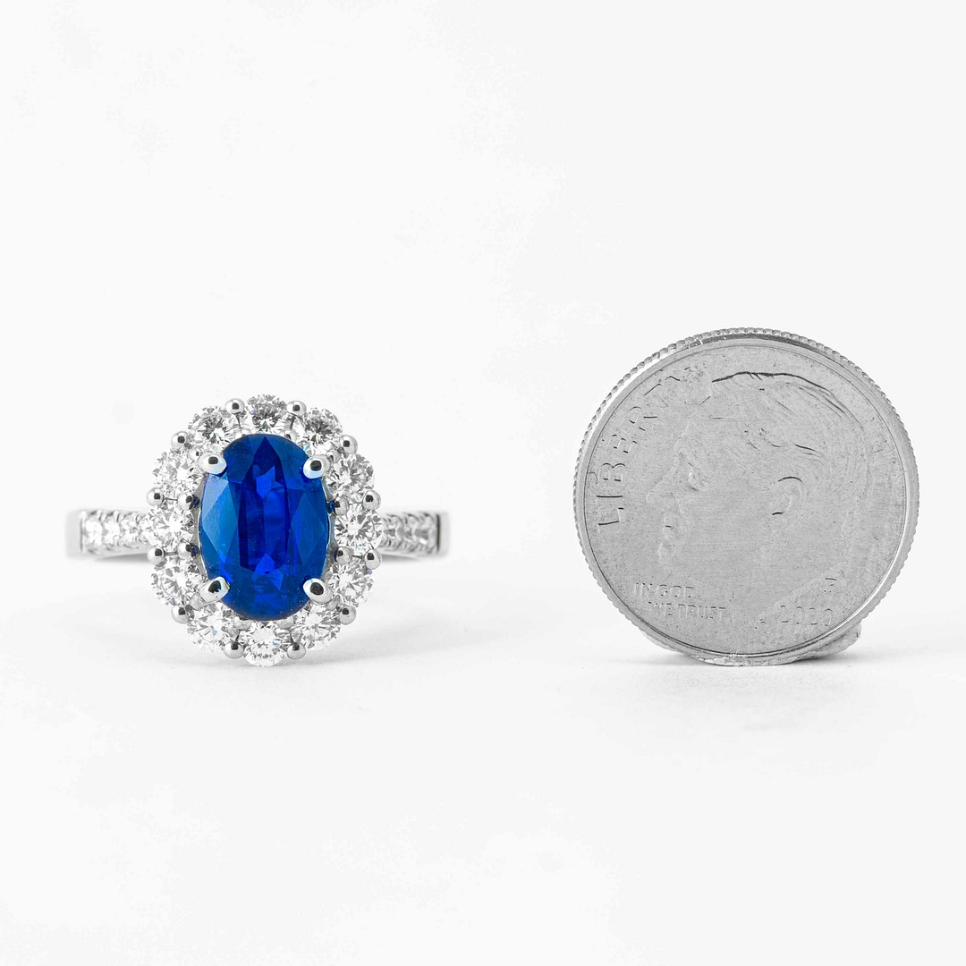 2.24 Carat Oval Blue Sapphire & Diamond Ring (White Gold)