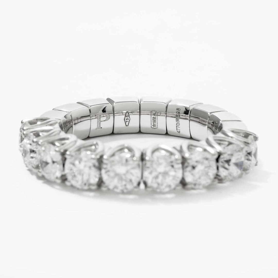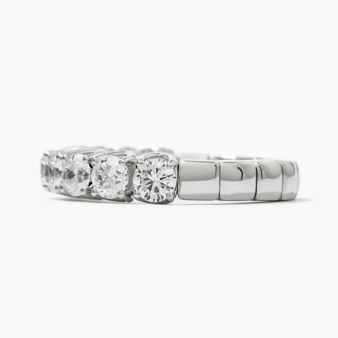 Discover innovative elegance with this 18 karat white gold Xpandable halfway band by Picchiotti, featuring 9 round brilliant-cut diamonds totaling 2.32 carats. With a remarkable F-G color and VS clarity, the diamonds shimmer with unmatched brilliance. Designed to fit sizes 6 to 12.75, this expandable band ensures comfort and flexibility without compromising on style. Perfect for weddings, anniversaries, or daily wear, this ring is the epitome of modern luxury.