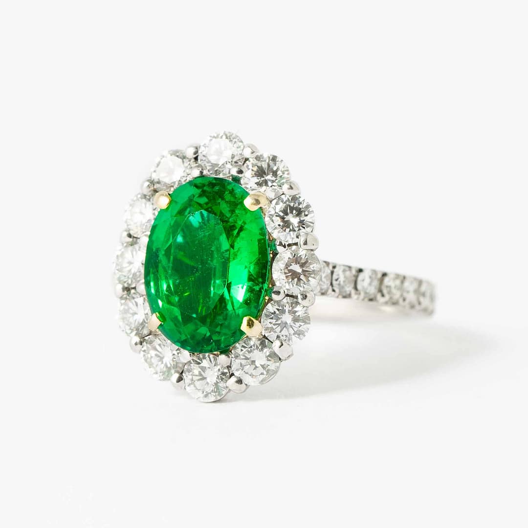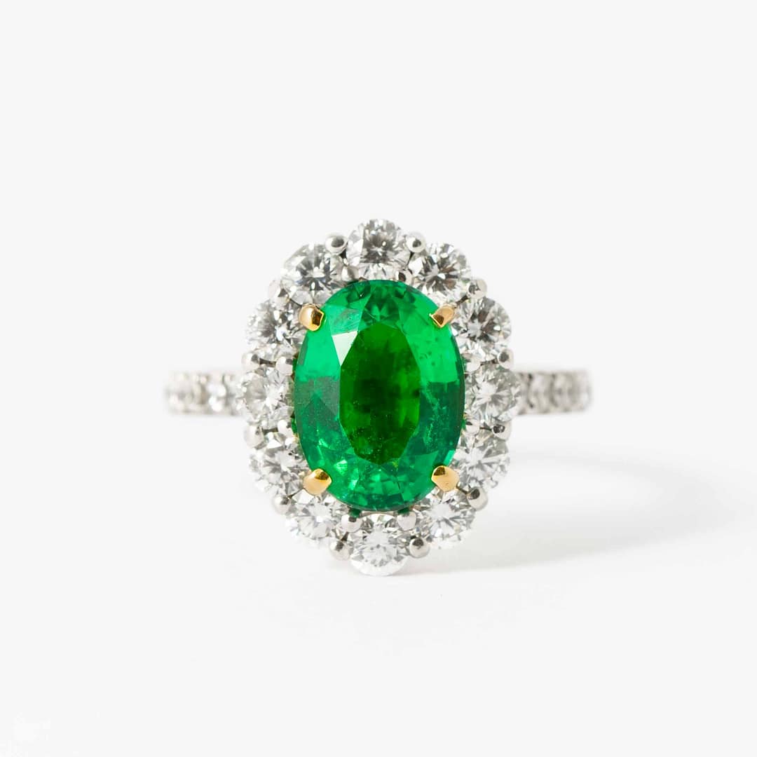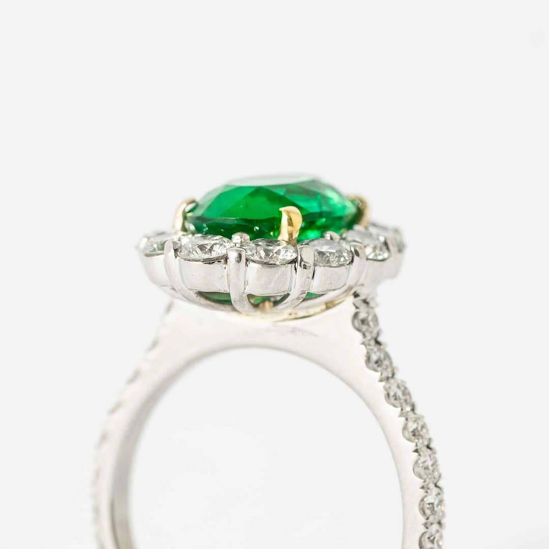 2.41 carat Oval Cut Emerald & Diamond Surround Ring (White Gold)