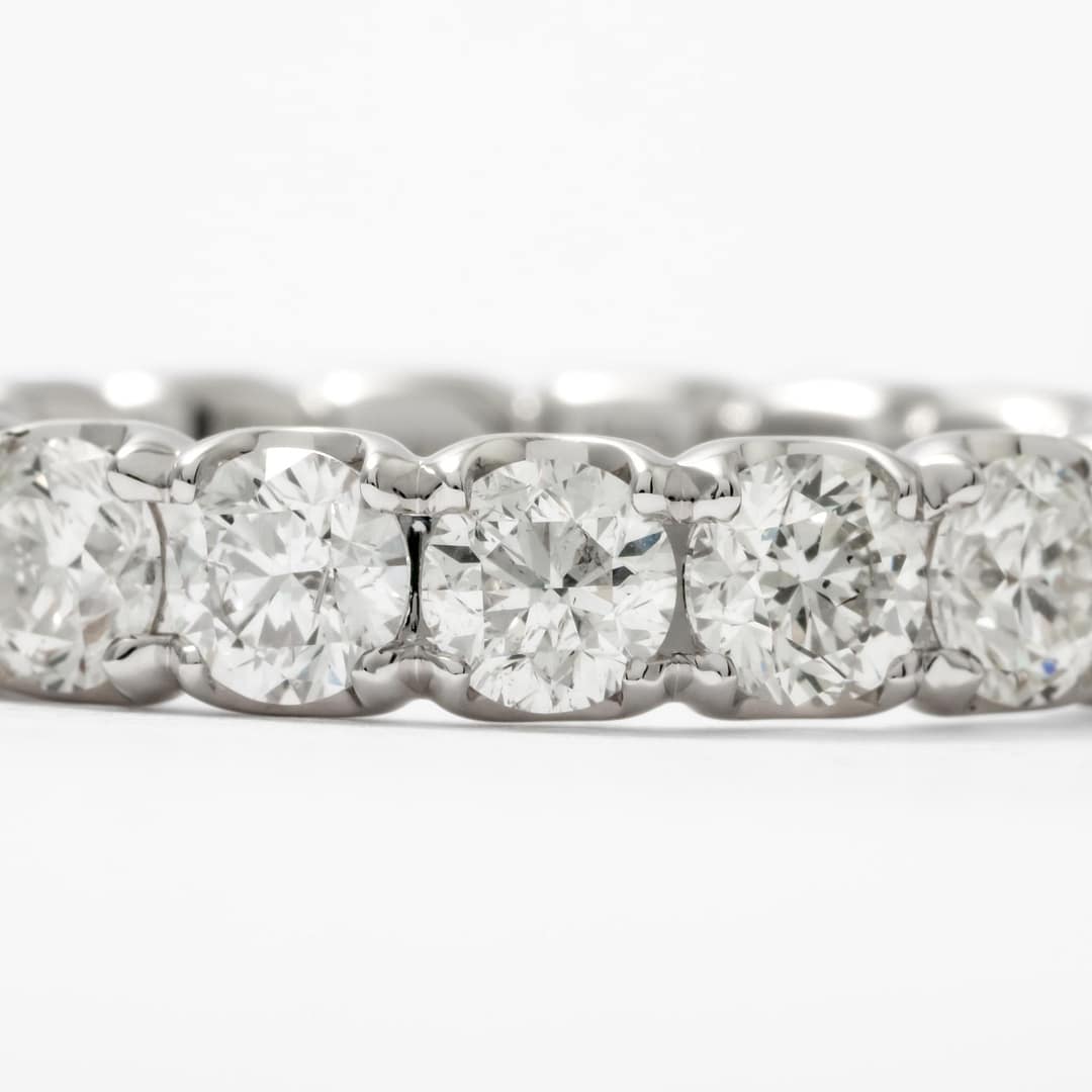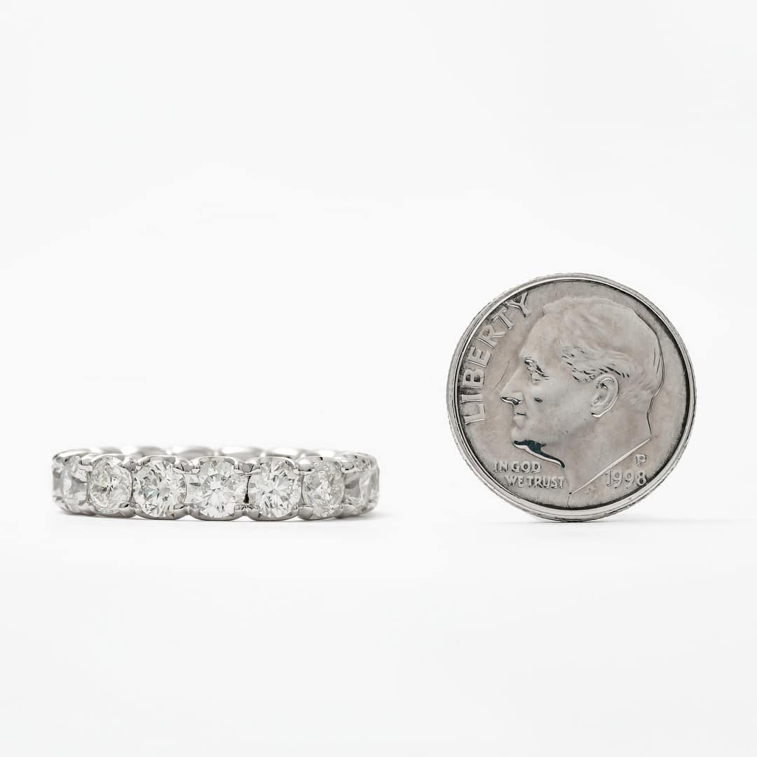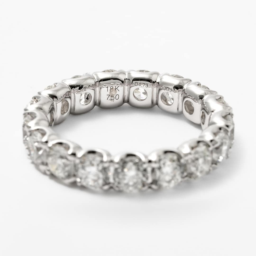 Exude timeless elegance with our 18 karat yellow gold Round Brilliant Cut Diamond Eternity Band. Featuring 21 diamonds with a total weight of 1.82 carats, this band boasts exceptional sparkle and quality. The diamonds, with a color grade of F-G and clarity of VS, are set in a beautiful yellow gold band sized at 6. This piece is perfect for those who desire a classic yet striking addition to their jewelry wardrobe.