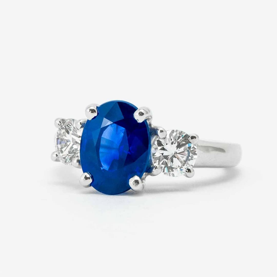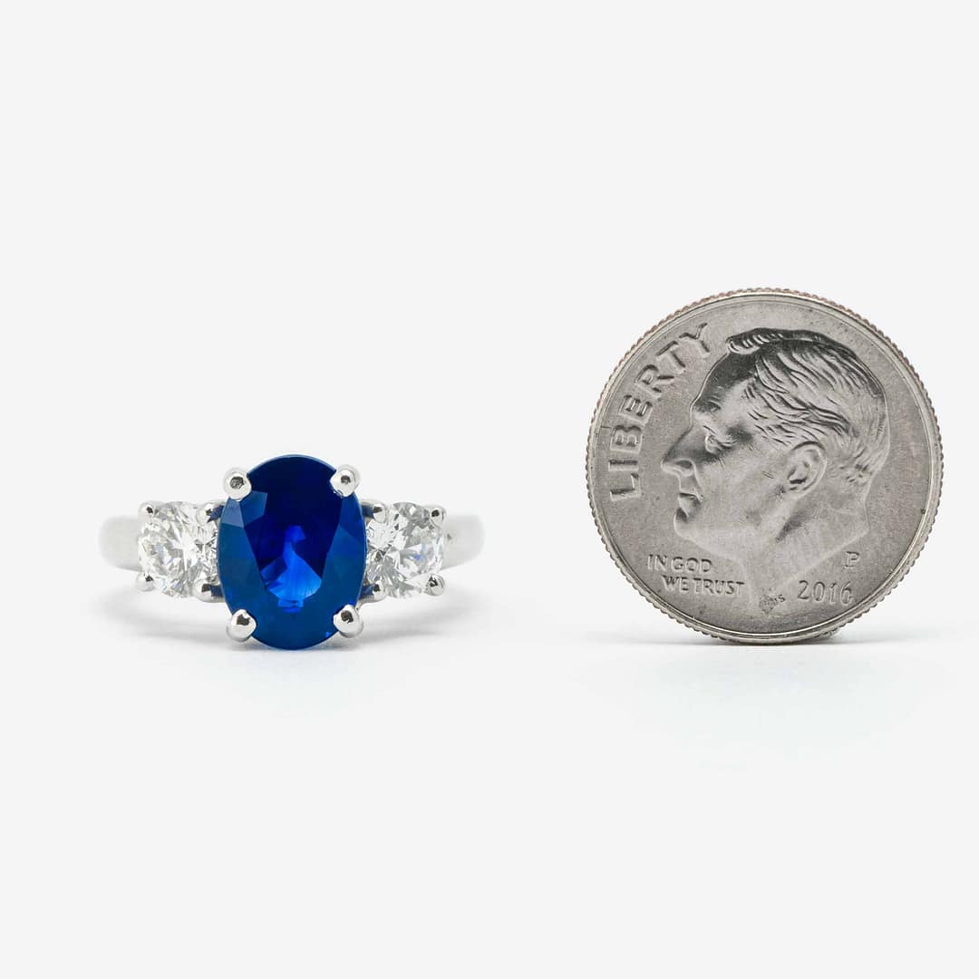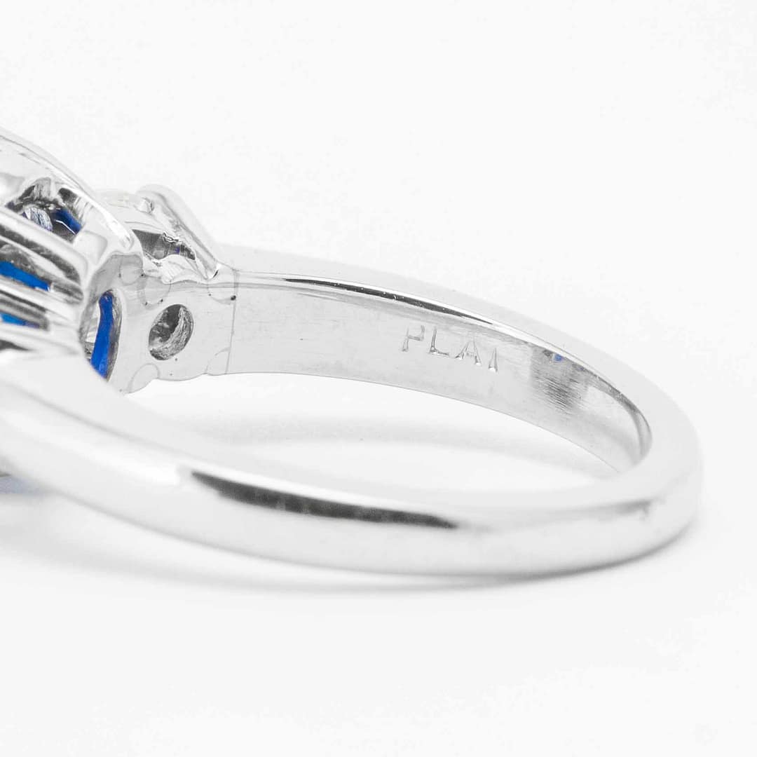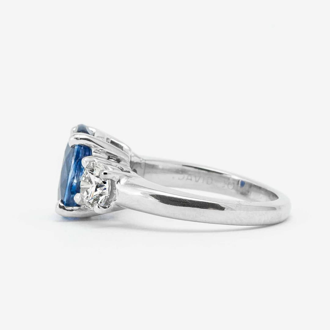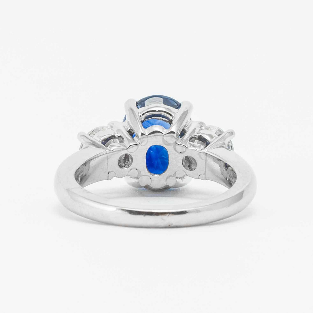 3.23 Carat Cushion Cut Sapphire & Diamond Three Stone Ring (Platinum)