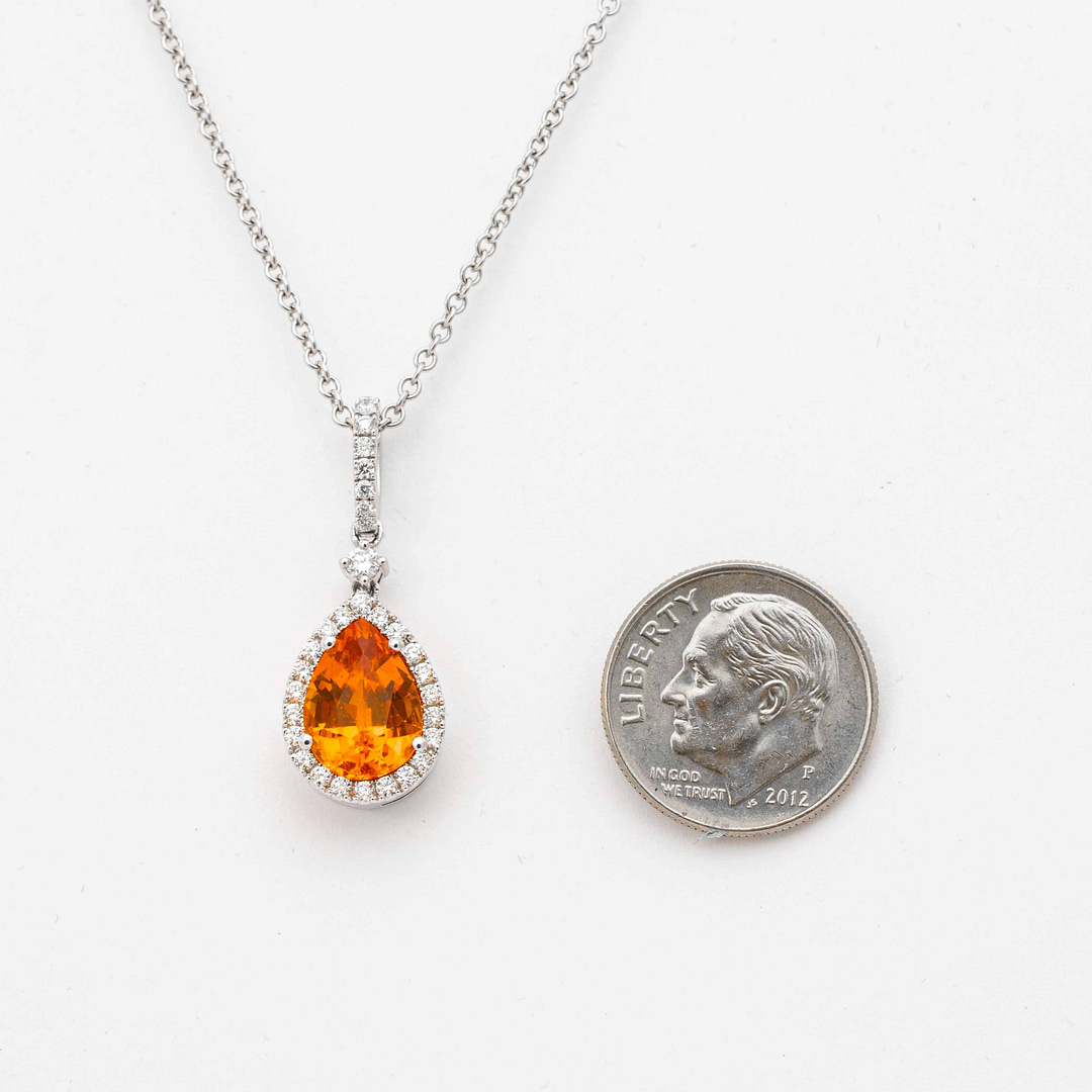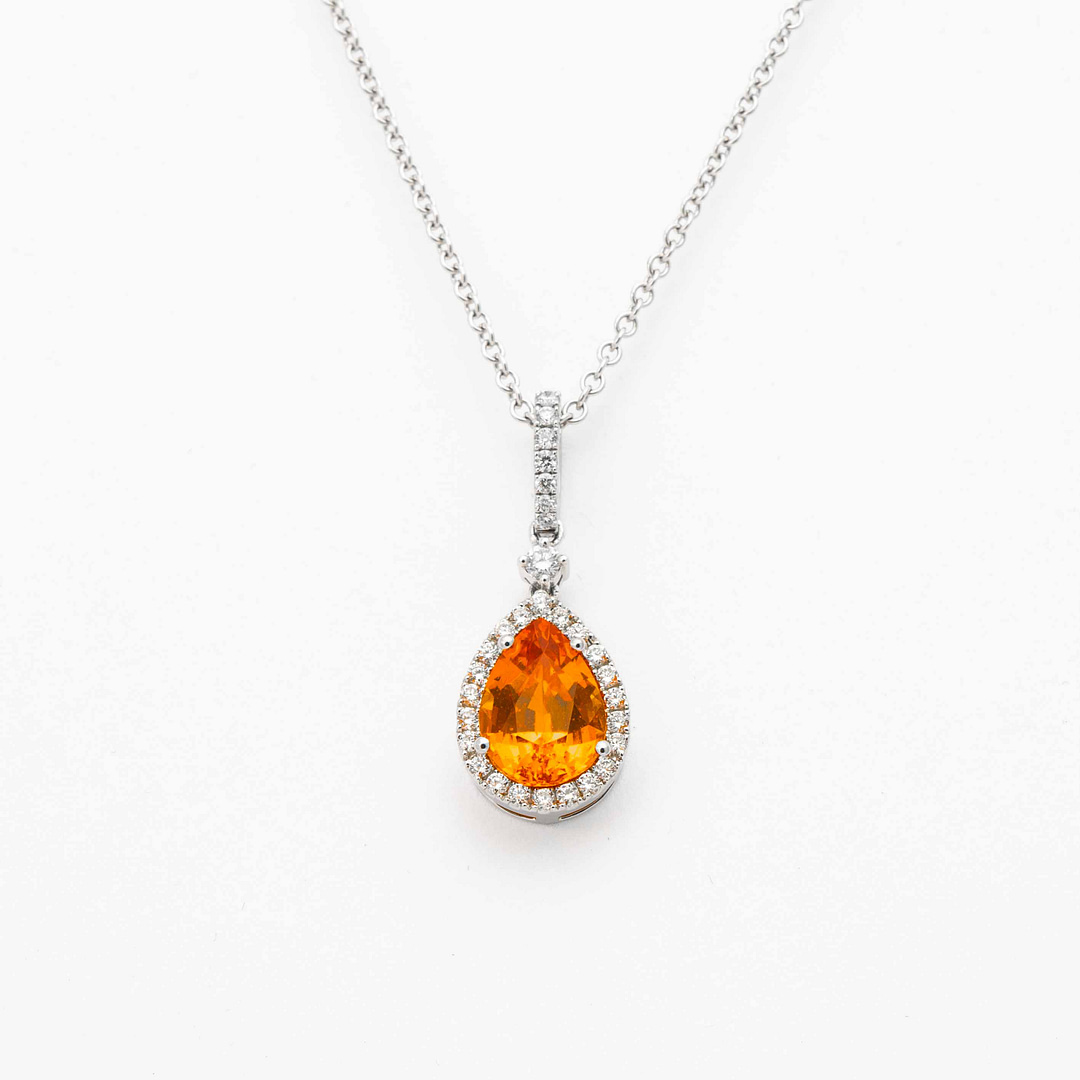 3.38 Carat Pear Shape Spessartite Pendant with Diamonds (White Gold)