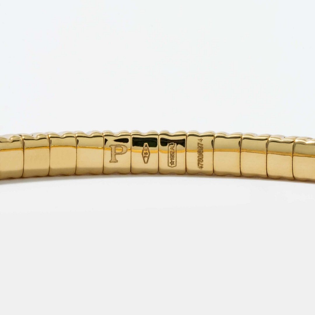 Elevate your wrist with the timeless elegance of this 18 karat yellow gold tennis-style expandable bracelet by Picchiotti. Featuring 71 round brilliant-cut diamonds totaling 3.70 carats, this piece dazzles with an F-G color grade and VS clarity. The expandable design ensures a comfortable and secure fit, combining luxury with versatility. A perfect blend of craftsmanship and sophistication, this bracelet makes a radiant addition to any collection.