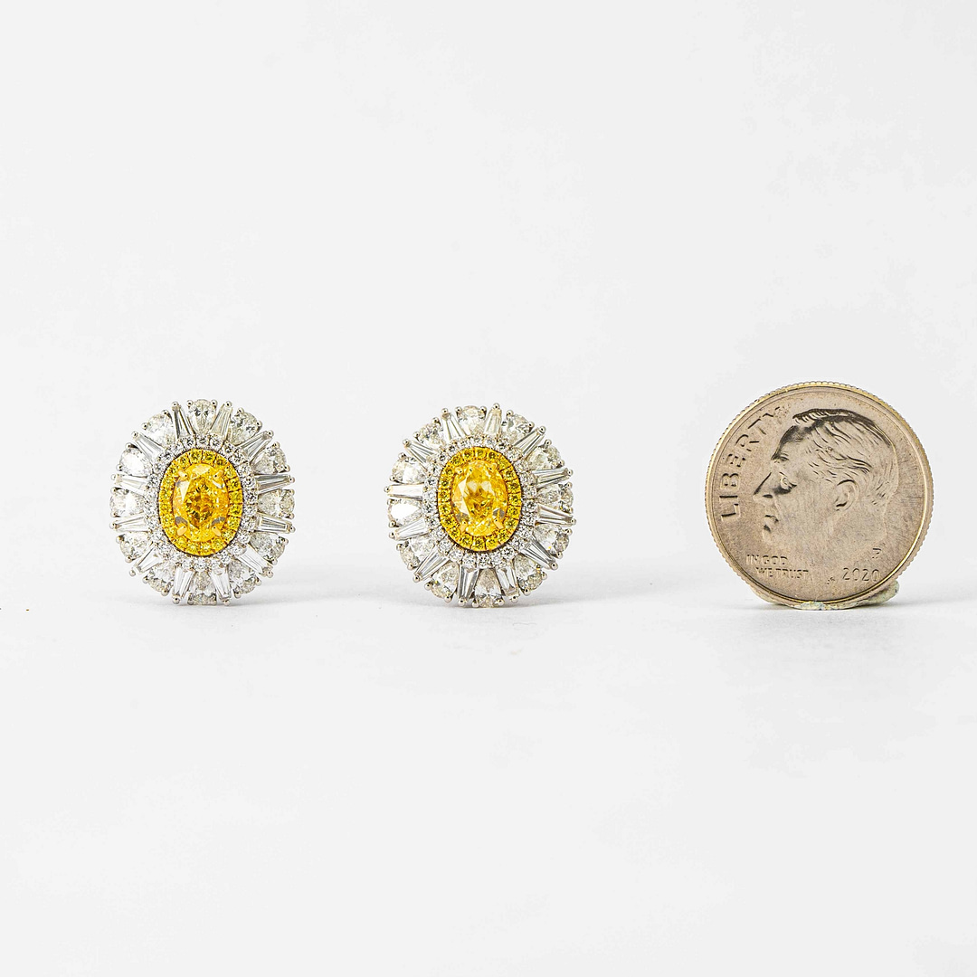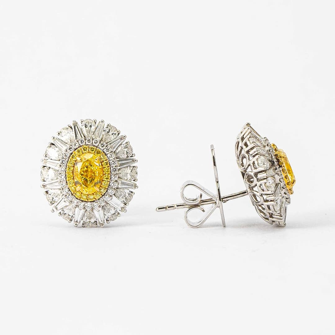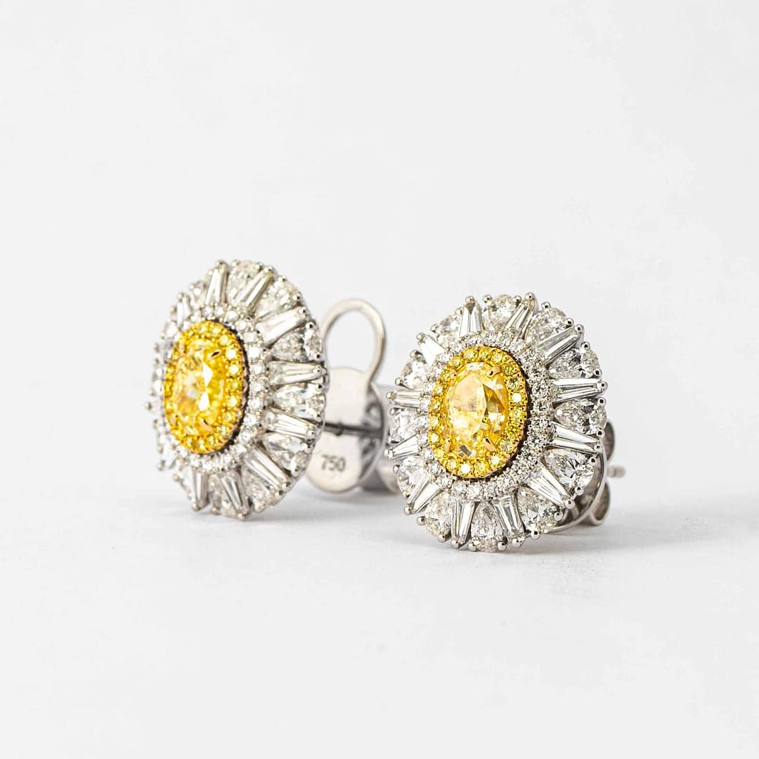 3.93 Total Carat Weight Oval Yellow Diamond Cluster Earrings (Two Tone)