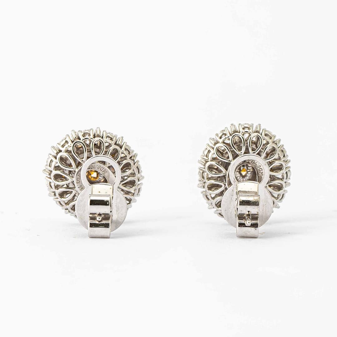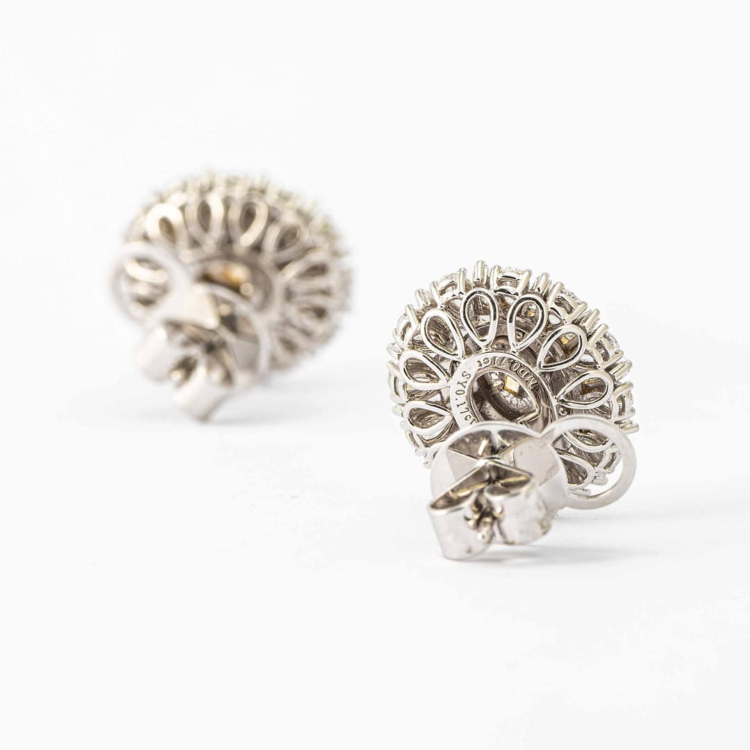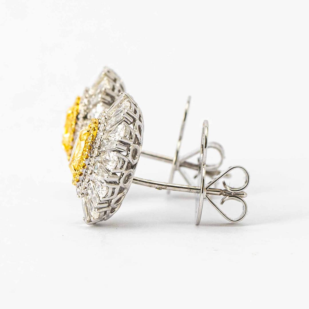 3.93 Total Carat Weight Oval Yellow Diamond Cluster Earrings (Two Tone)