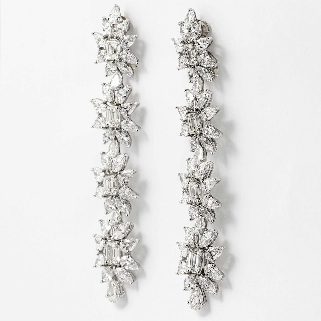 38.50 Carat Total Weight Fancy Flower Drop Earrings (Platinum)