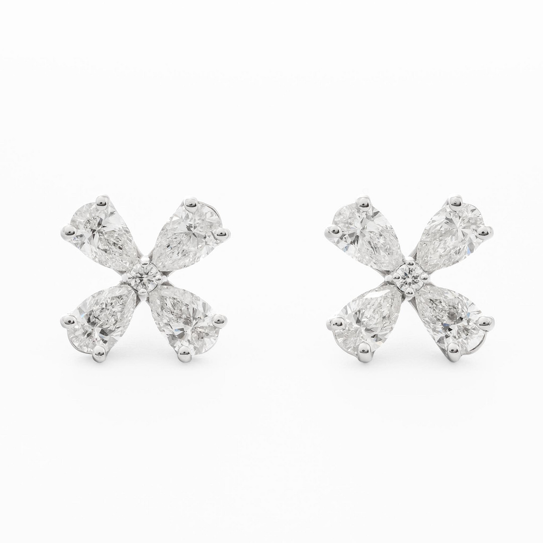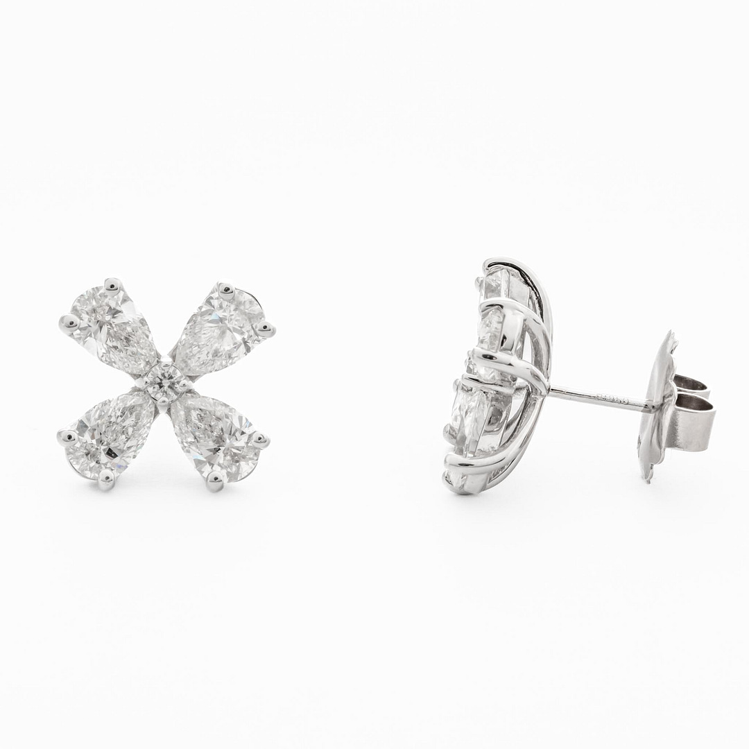 4.25 Total Carat Weight Pear Shape Diamond Flower Earrings (Platinum)