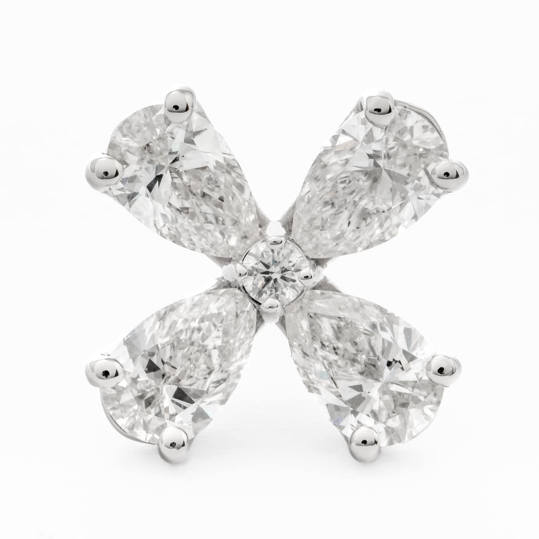 Embrace nature’s beauty with our platinum flower earrings at Shreve, Crump & Low. This stunning pair showcases 8 pear-shaped diamonds weighing 4.25 carats, elegantly set with 2 round diamonds weighing 0.10 carats. The G-H-I color and VS2-SI1-SI2 clarity of these GIA certified diamonds ensures brilliance and sparkle that won’t go unnoticed. This captivating pair is the epitome of elegance.