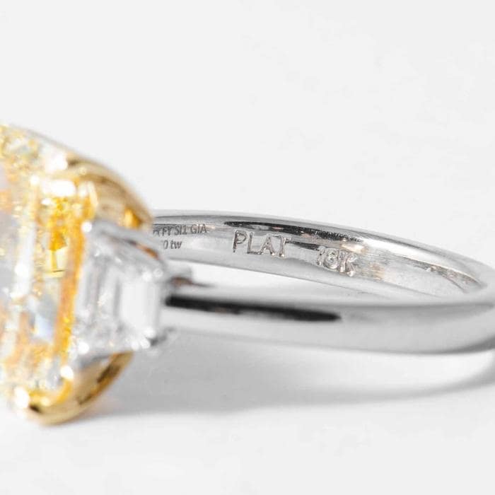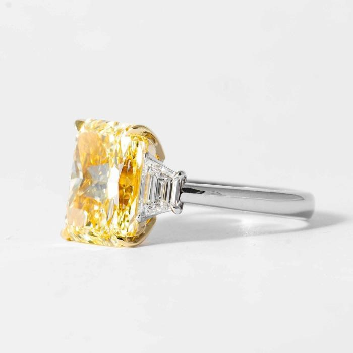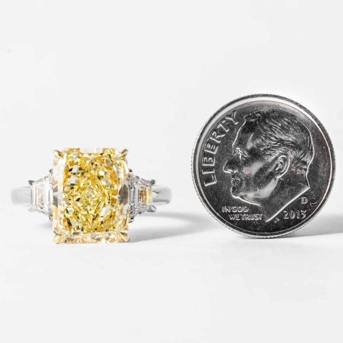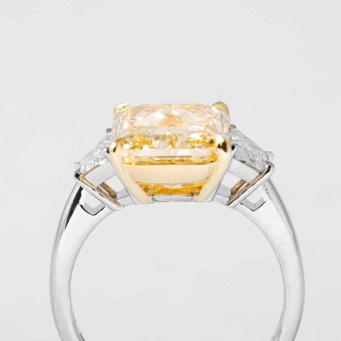 5.82 carat Fancy Yellow SI1 Radiant Cut Canary Diamond 3-Stone Ring (GIA Certified)