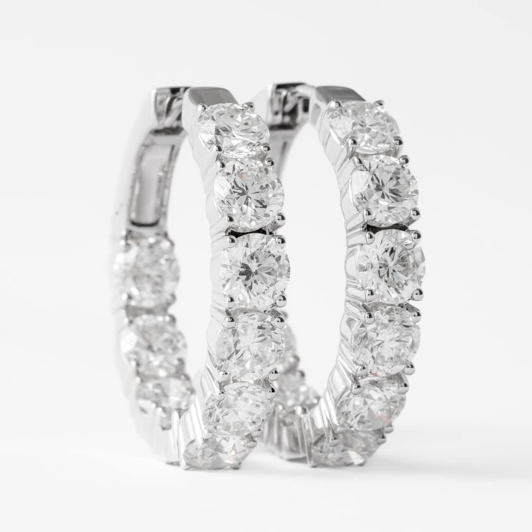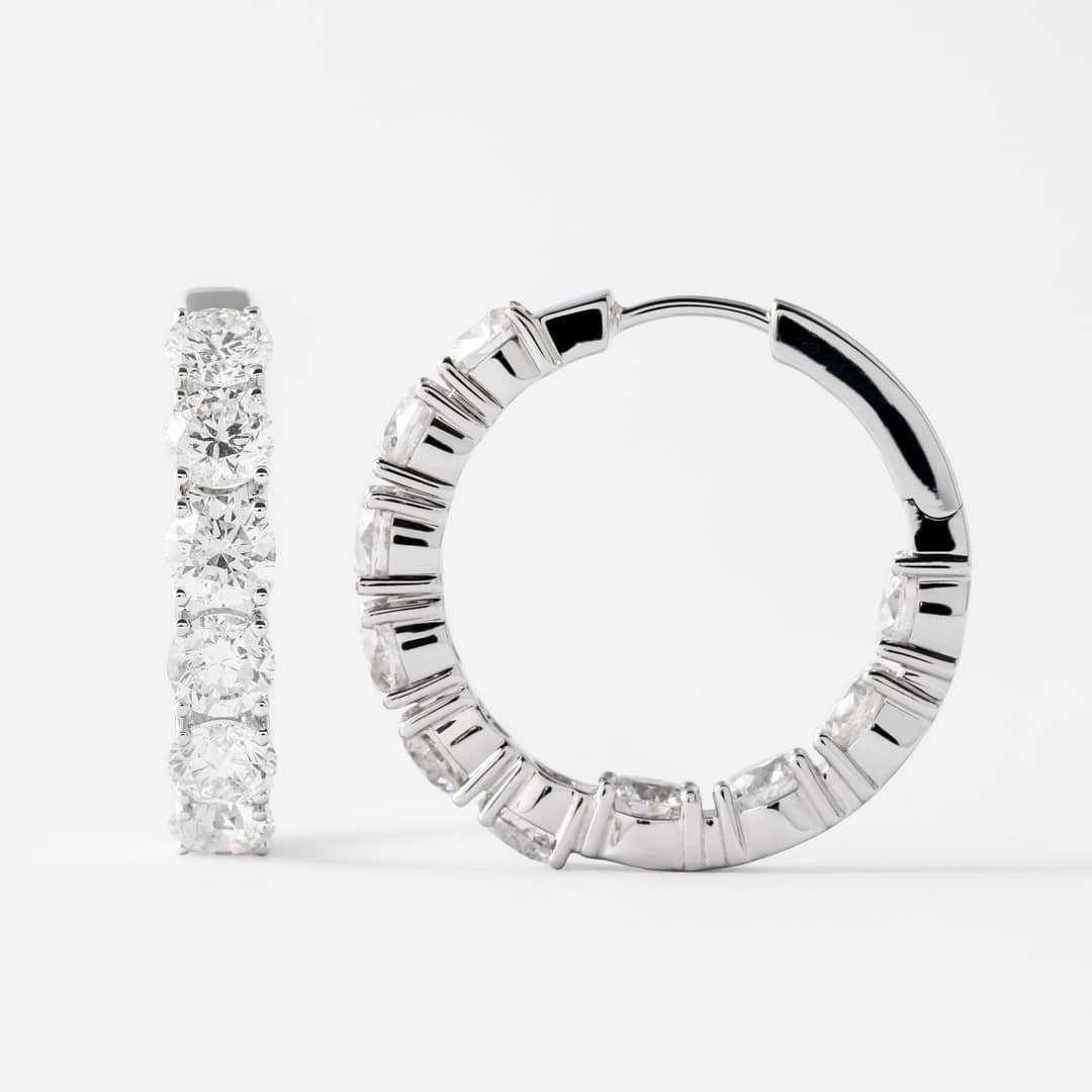 7.03 Carat Total Weight Round Diamond In/Out Hoop Earrings (White Gold)