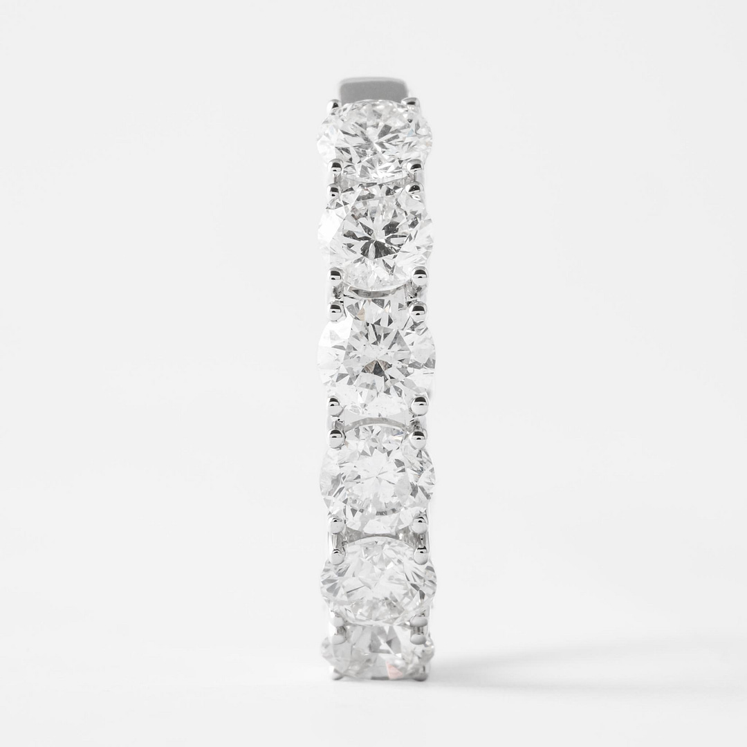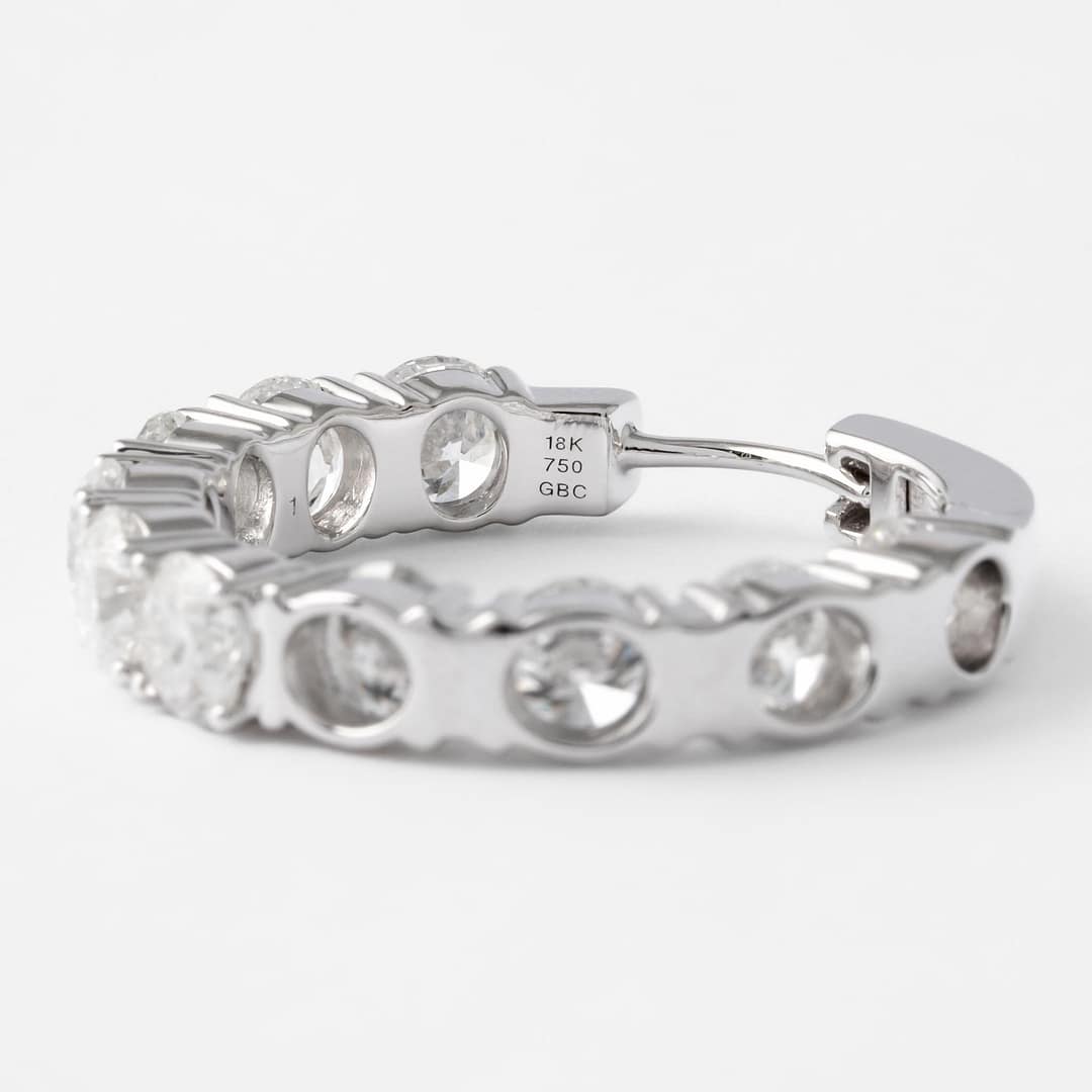 18 karat white gold hoop earrings consisting of 20 round brilliant cut diamonds set in/out weighing a total of 7.03 carats.