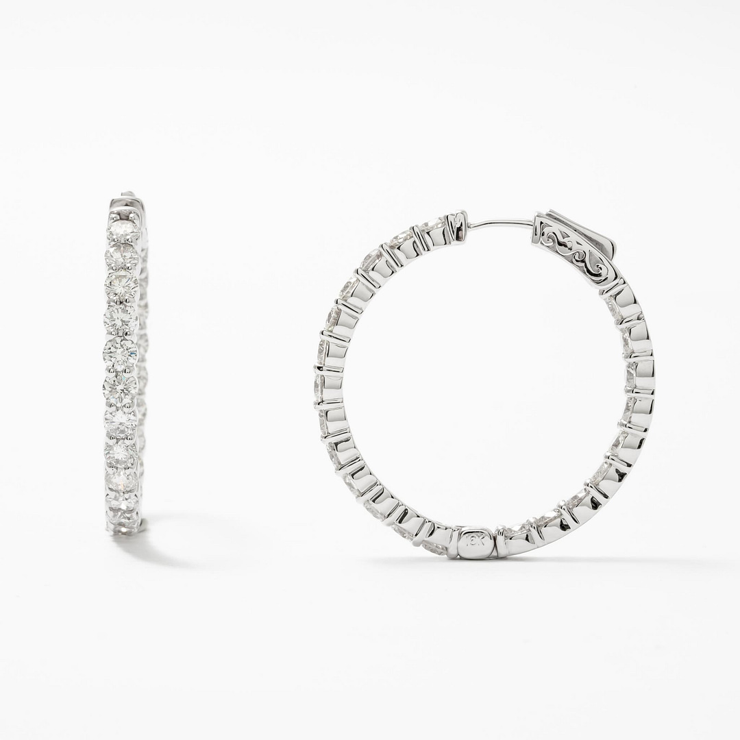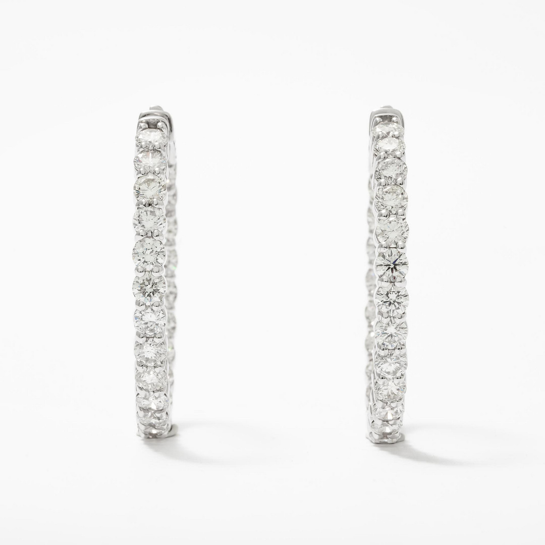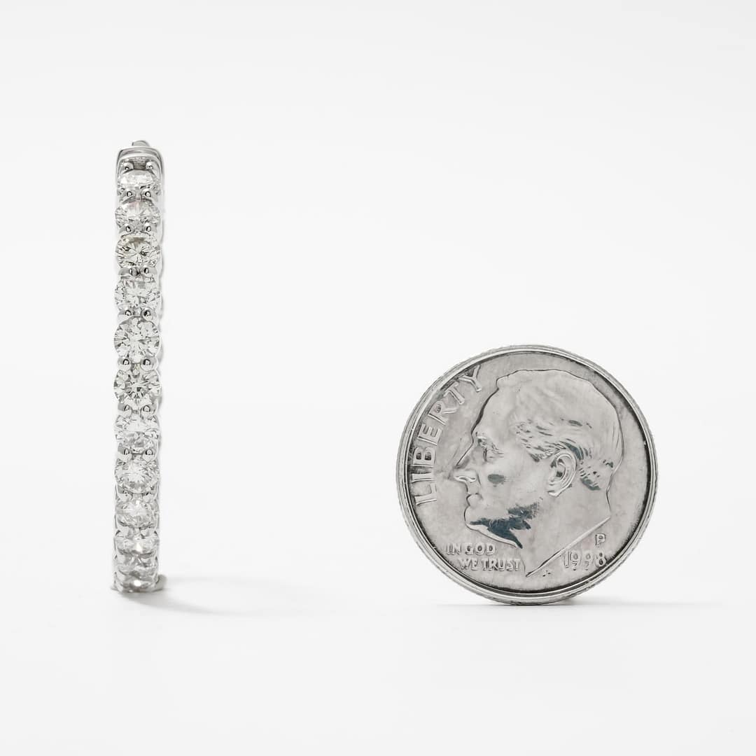 7.36 Total Carat Weight Round Diamond In/Out Diamond Hoop Earrings (White Gold)