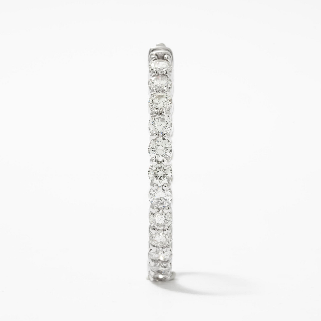 Add a touch of dazzling brilliance to your ensemble with these 18K white gold in/out hoop earrings. Encrusted with round diamonds totaling 7.36 carats, these hoops catch the light from every angle, creating a mesmerizing sparkle. Perfect for both formal events and elevating everyday outfits, these earrings offer a bold yet elegant statement. Crafted to perfection, they are a must-have for anyone who loves luxurious, eye-catching jewelry.