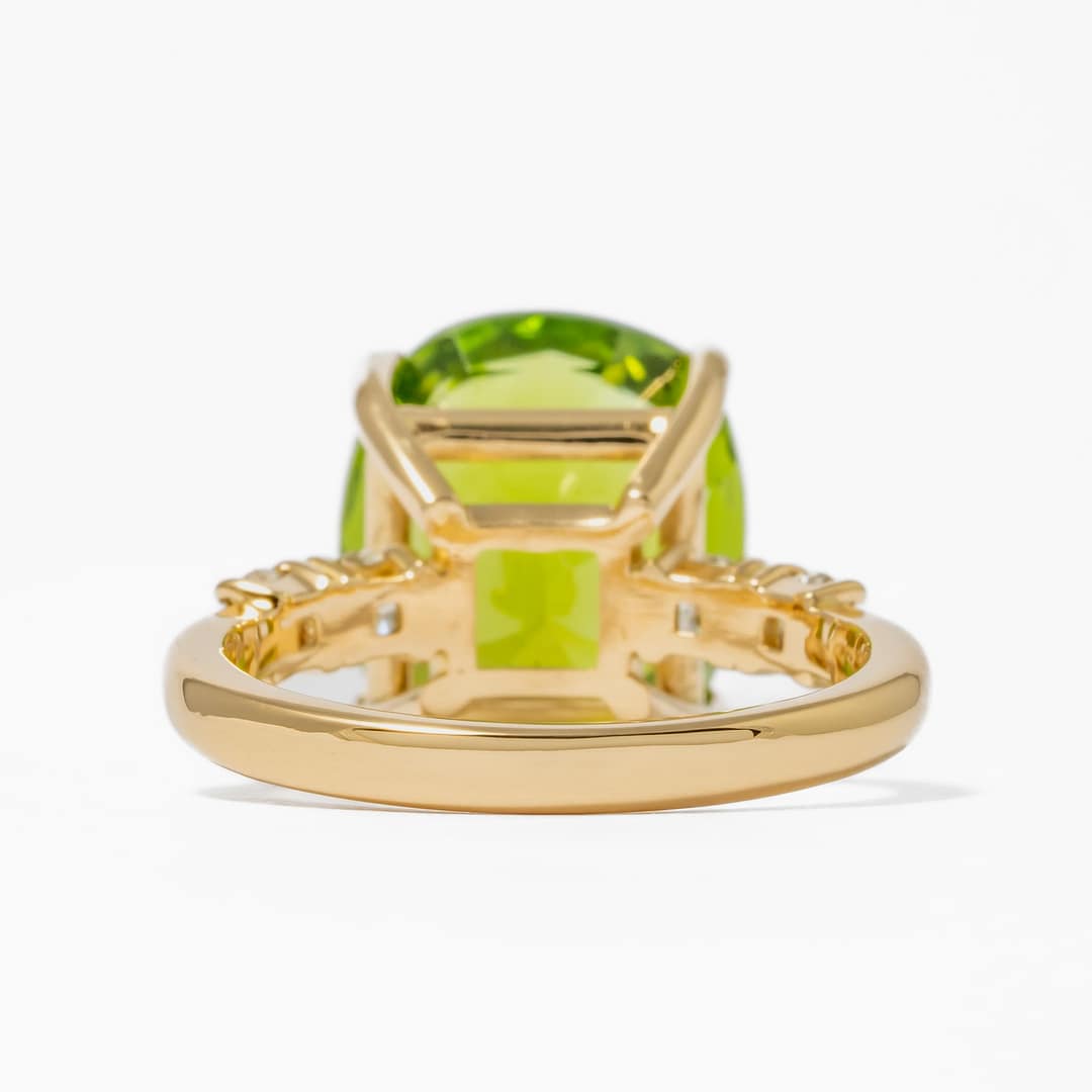 9.27 Carat Cushion Peridot & Diamond Ring (Yellow Gold)