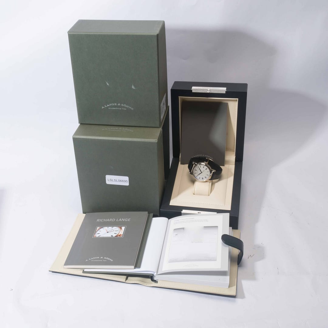 Condition Report: This genuine A. Lange is in excellent condition. Watch comes with all original box and papers (papers remain undated) Circa 2020. Watch has been inspected and tested prior to sale – movement is in functioning as normal. *Please note this specific Richard Lange White Gold was only sold via Lange Authorized Boutiques. This specific reference 232.026 was introduced in 2013 and discontinued in 2020. Last Known MSRP approximately $36,589.00 USD