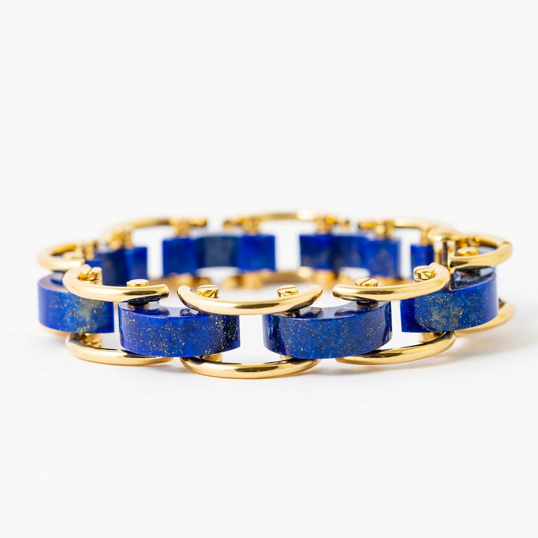 Blue Lapis Single Row Bridge Bracelet, Signed Aletto Brothers (Yellow Gold)