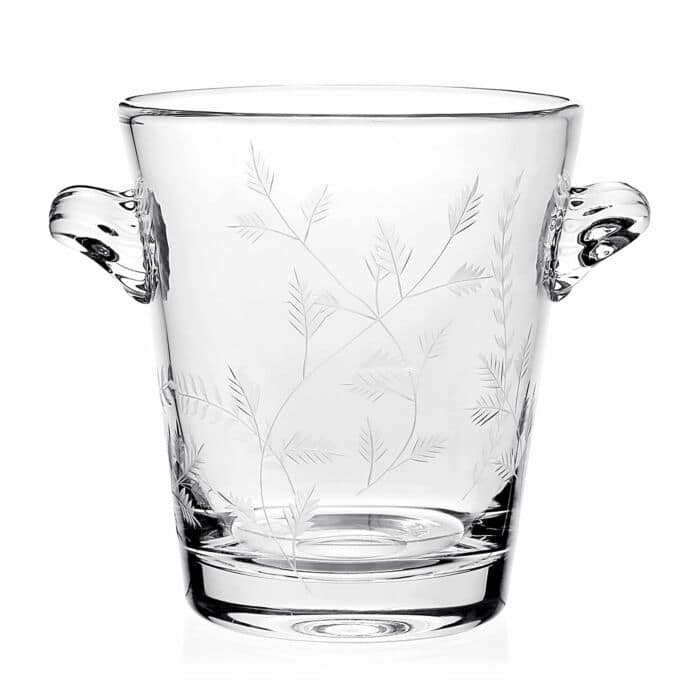 This handmade clear crystal “Daisy B” ice bucket from William Yeoward consists of beautiful hand cutting leafy fern motifs.
