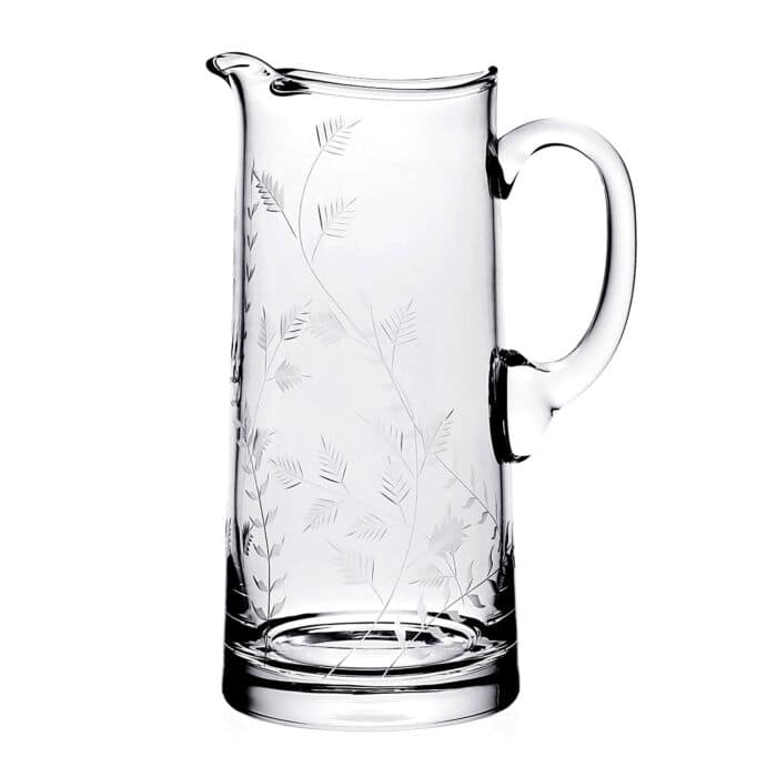 This handmade clear crystal “Daisy B” pitcher from William Yeoward consists of beautiful hand cutting leafy fern motifs.