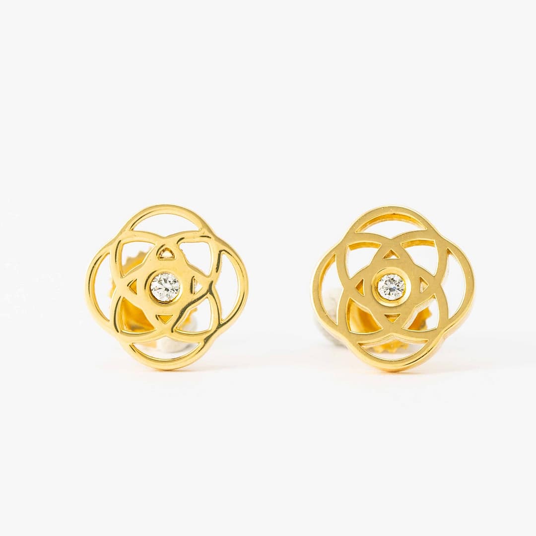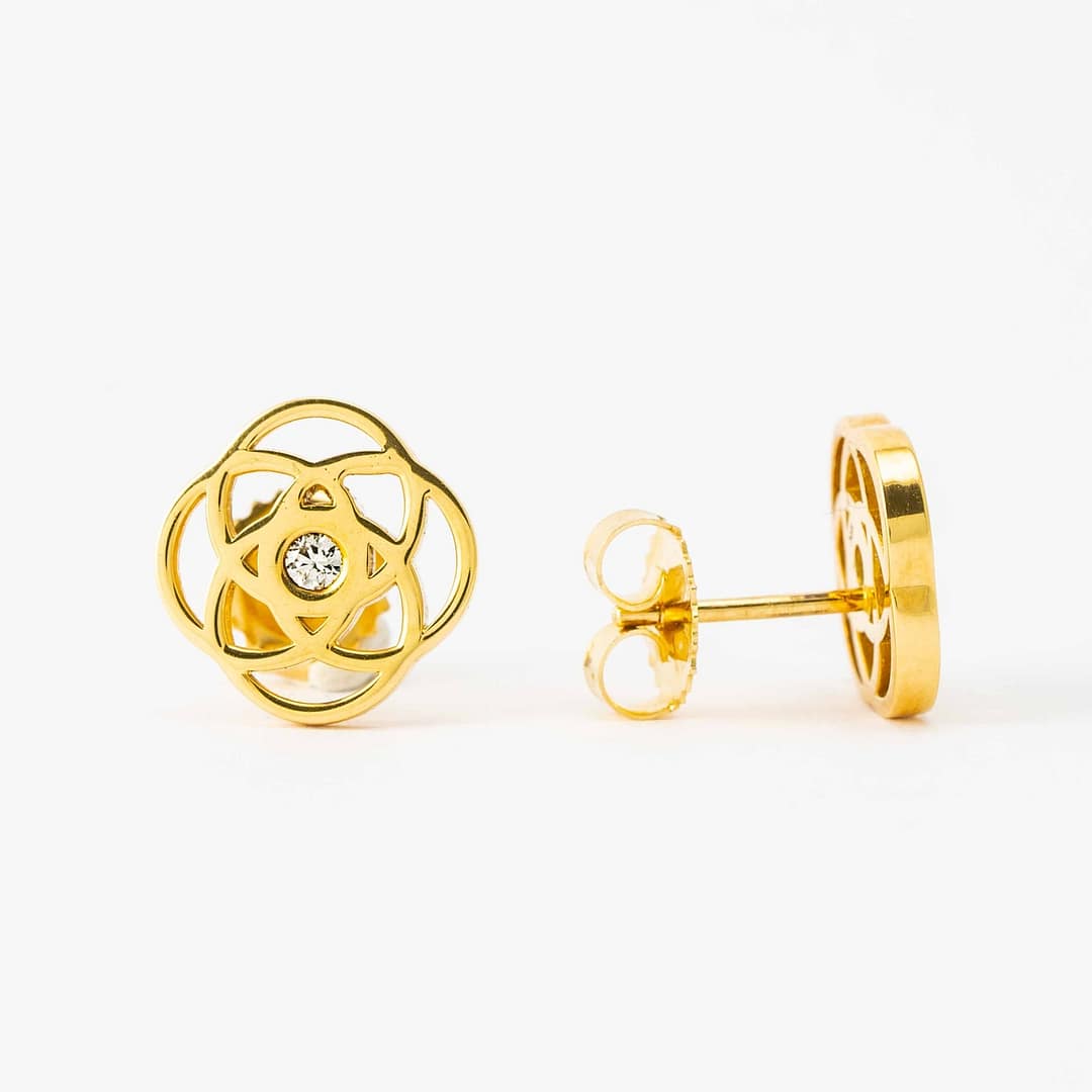 Ikigai™ 18 Karat 12mm Small Stud Earrings with Diamond (Yellow Gold)