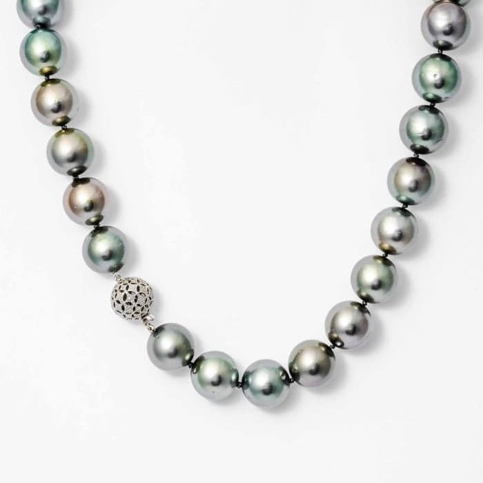 Large Black Tahitian Pearl Necklace with Diamond Clasp (White Gold)