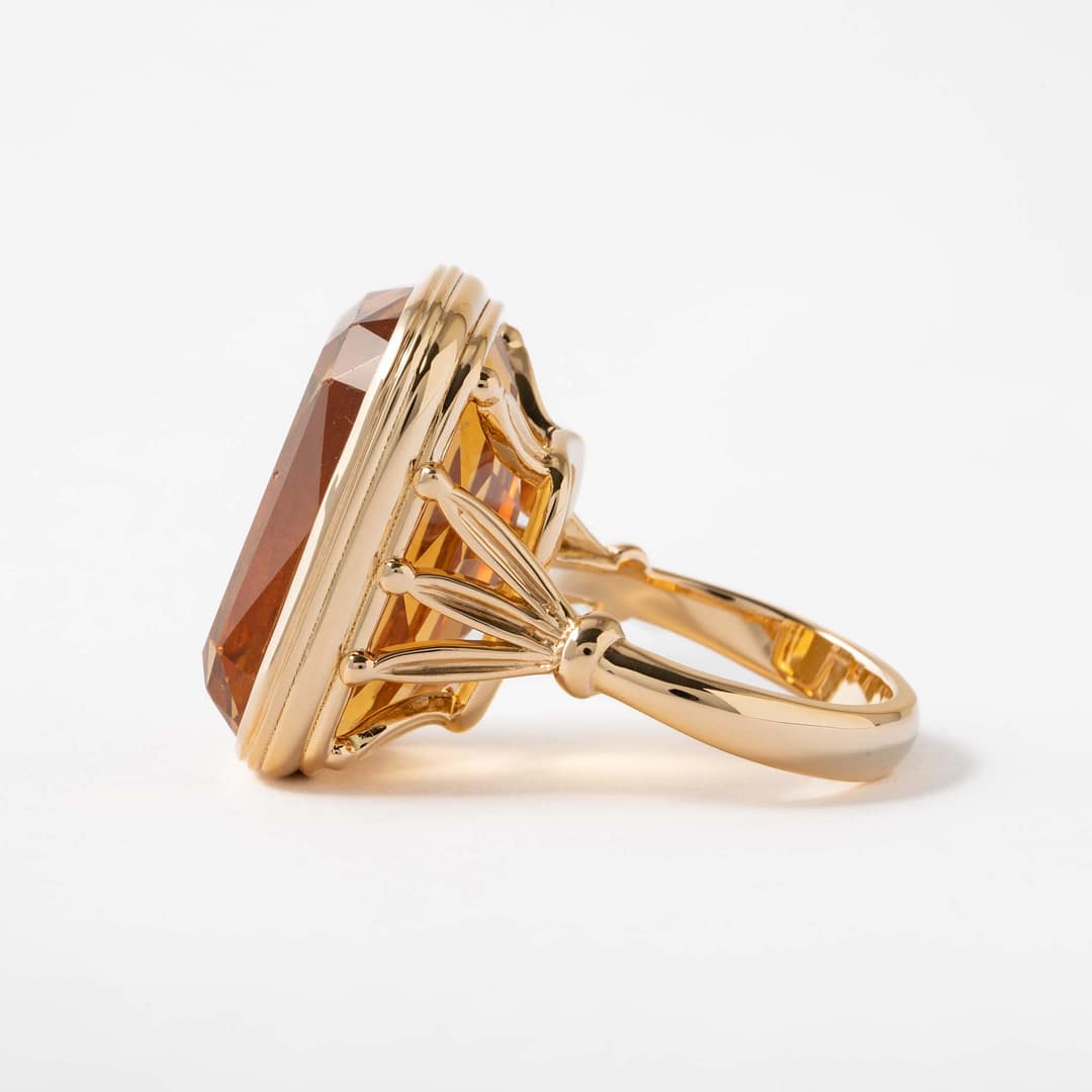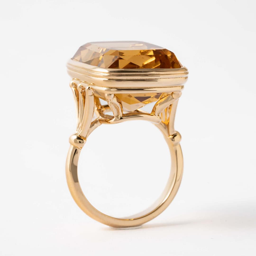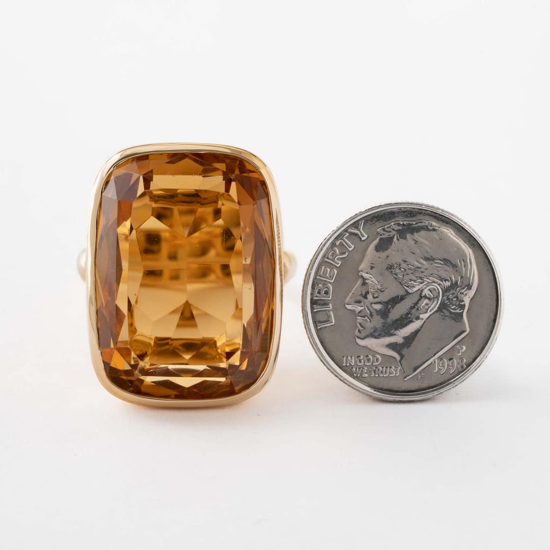 Large Cushion Shape Citrine Cocktail Ring (Yellow Gold)
