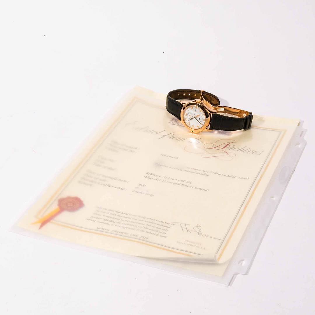 Condition Report: This genuine Patek Philippe timepiece is in excellent condition. Watch keeps accurate time. This timepiece has been inspected, and tested prior to sale. Watch comes with Patek Philippe archival extract papers (dated Feb. 2003)….This reference is discontinued and out of production. The official Patek years of this ref. 5134 were very short 2 year period from approx. 2002-2004. Last known MSRP approx. $27,400.00 USD