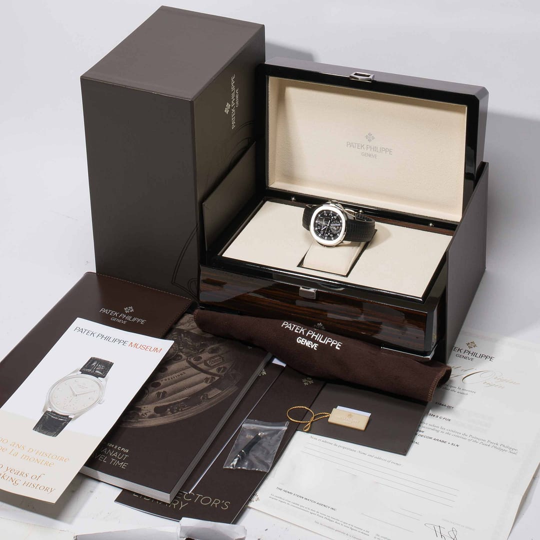 Condition Report: This genuine Patek Philippe Aquanaut is in mint condition. Includes Original Patek inner/outer box, papers, Patek pusher, certificate of original (dated 2020). This watch has been inspected and tested prior to sale – movement functioning as normal. This reference a highly sought after Patek Aquanaut, and rarely available at via authorized dealers Patek Philippe, furthermore this specific stainless steel aquanaut travel time is officially discontinued, sold out, and unavailable via Patek Authorized Points of Sale.