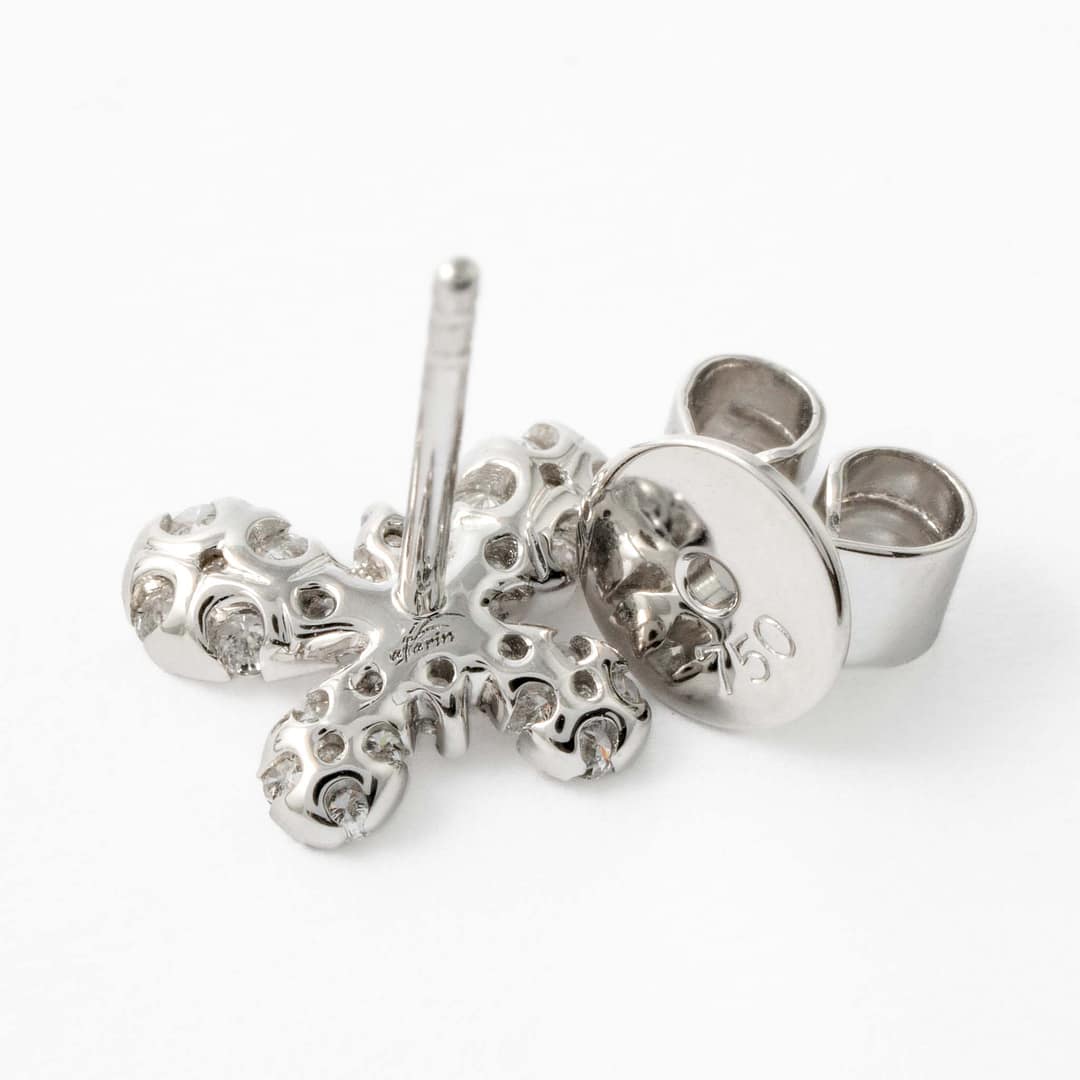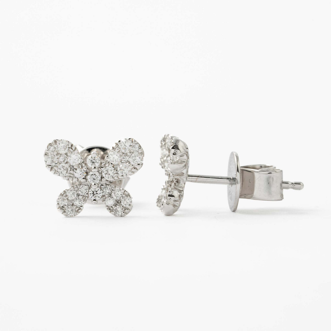 18 karat white gold butterfly motif earrings consisting of 0.45 carats of round diamonds.