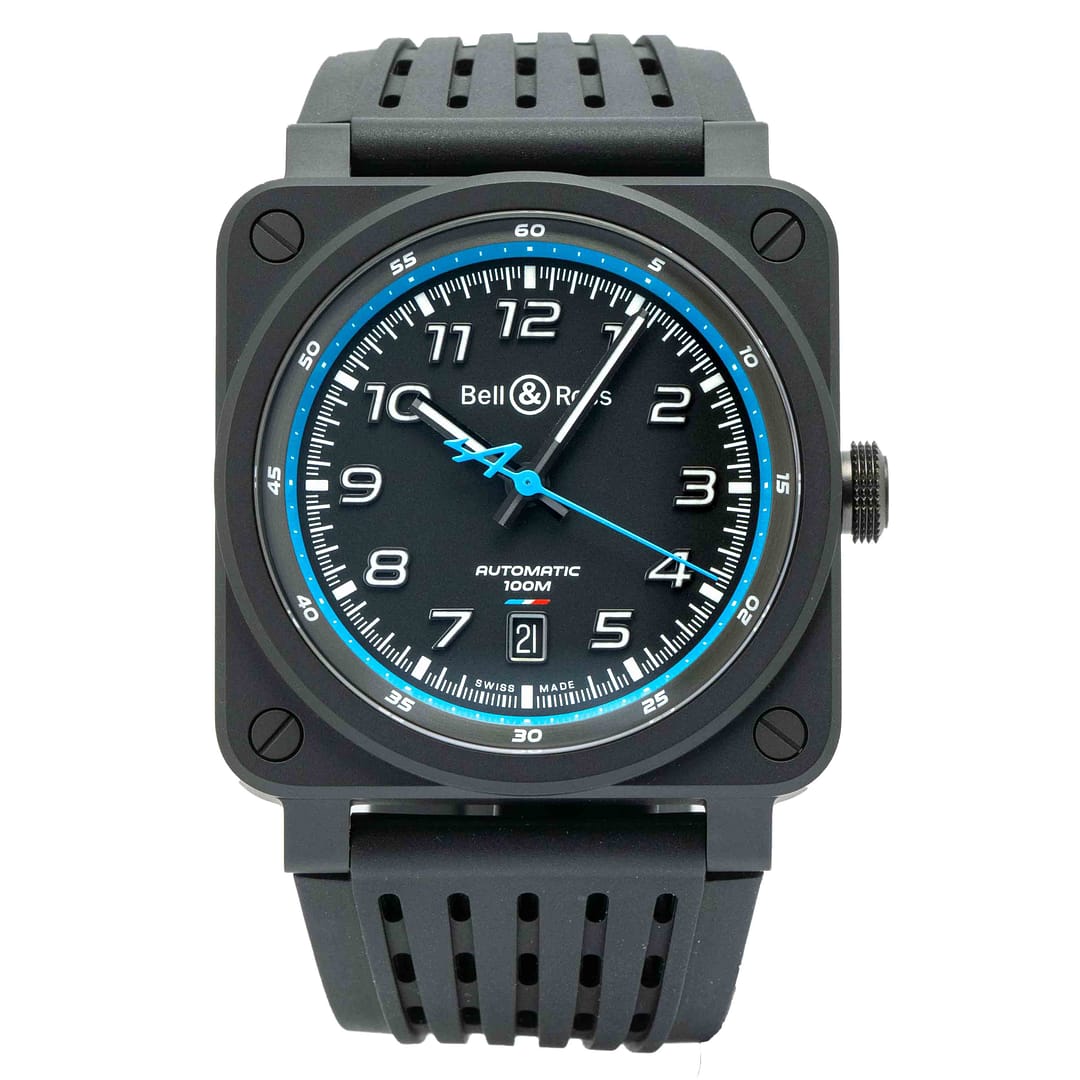 Preowned Bell & Ross BR03-92 Alpine F1 L. E. Black Ceramic Limited Edition 42mm (BR0392-A522-CE/SRB)