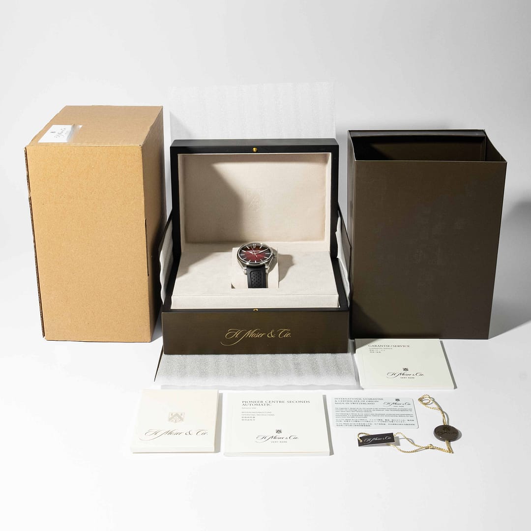 Condition Report: This genuine H. Moser and Cie is in excellent condition. Watch comes with all original H. Moser box, papers, and warranty card dated Feb. 2021. *This specific Pioneer MAD Red dial is officially discontinued out of production and unavailable via H. Moser Authorized Points of Sale. Original MSRP approx. $13,000.00 USD